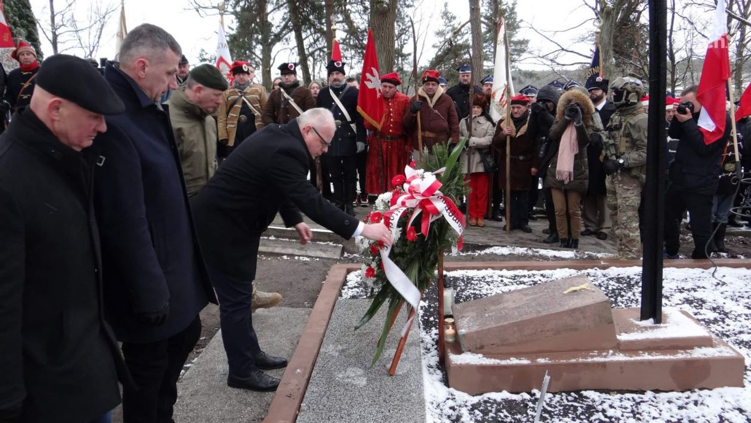 Następnie głos zabrał burmistrz miasta i gminy Małogoszcz Mariusz Piotrowski oraz licznie przybyli goście, w tym wiceminister sportu i turystyki, poseł Anna Krupka oraz wiceminister spraw zagranicznych, poseł Piotr Wawrzyk. Potem obecni na uroczystościach zebrani przemaszerowali do kościoła pod wezwaniem Wniebowzięcia Najświętszej Maryi Panny w Małogoszczu. Tam odprawiono mszę świętą w intencji poległych powstańców styczniowych, której przewodniczył ksiądz biskup Andrzej Kaleta. W homilii biskup pomocniczy diecezji kieleckiej zwrócił uwagę na ofiarę, jaką naród Polski poniósł w walce o odzyskanie niepodległości. Po mszy świętej, na cmentarzu parafialnym na wzgórzu Babinek, odbył się Apel Poległych. Wspólnie z samorządowcami mieszkańcy miasta złożyli kwiaty i zapalili znicze.