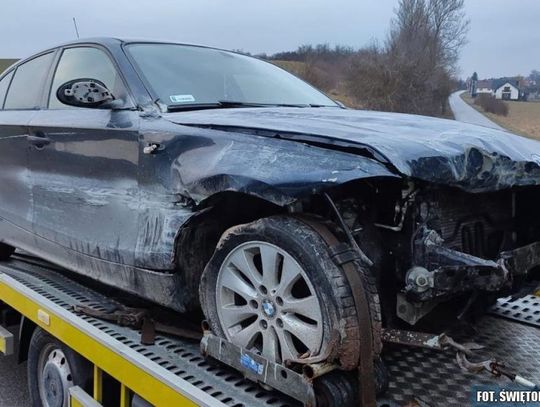 Po wykonanych czynnościach mundurowi zauważyli lawetę, która przewoziła uszkodzone BMW. Ich czujność przyniosła efekt.