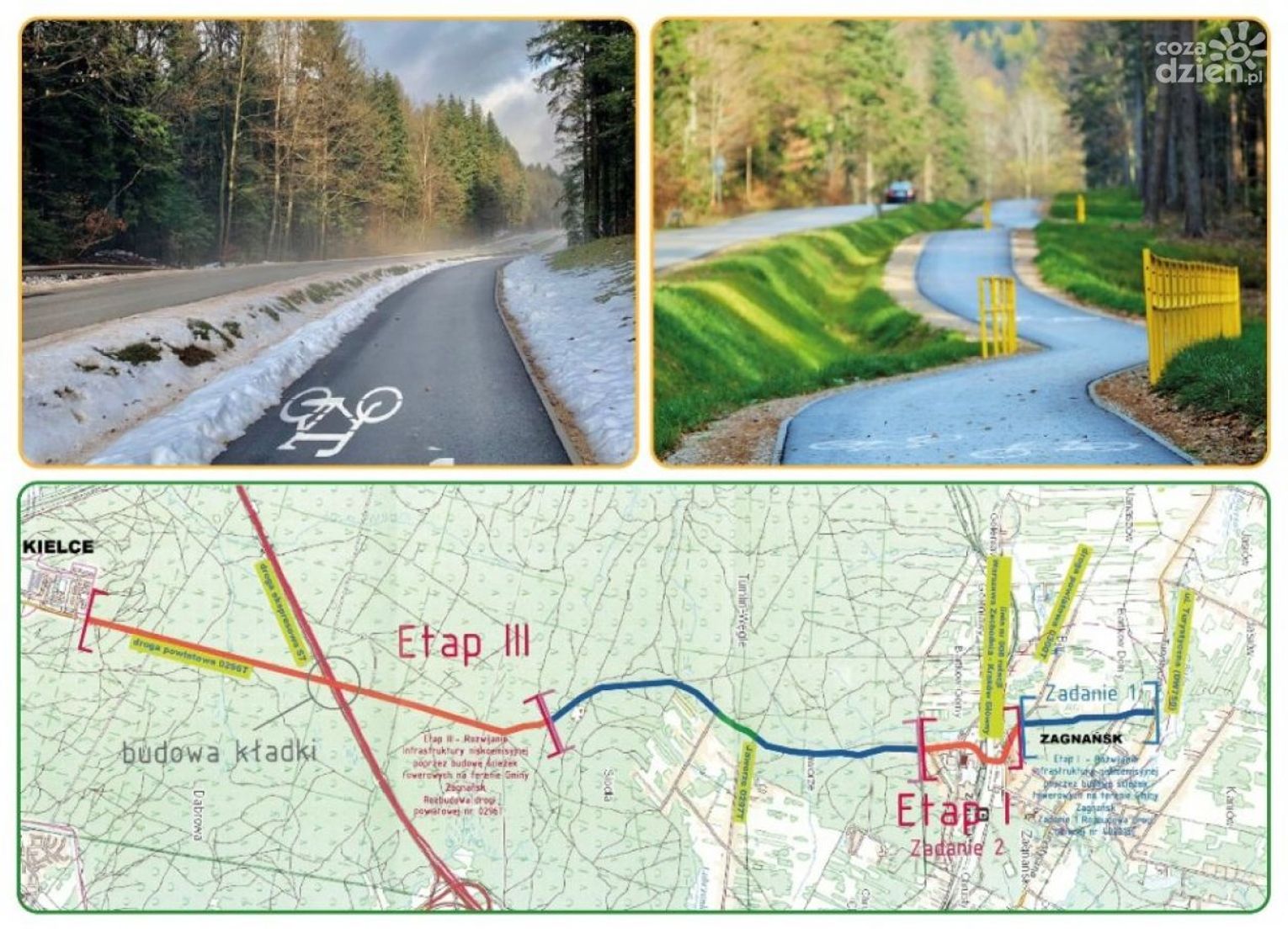 Gotowy jest już jeden z trzech odcinków rowerowej trasy, od ulicy Przemysłowej w Zagnańsku do skrzyżowania ze ścieżką edukacyjną „Na królewskim szlaku” przy kopalni Sosnowica.