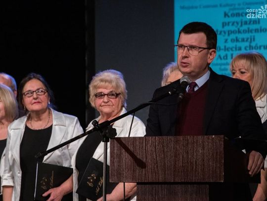 Na scenie, oprócz świętującego urodziny chóru wystąpiły chóry, zespoły i soliści zaprzyjaźnieni z jubilatem. Prawdziwą wisienką na torcie okazał się mini recital gwiazdy polskiej piosenki Jana Wojdaka oraz pochodzącego z Ostrowca laureata nagrody Grammy Włodka Pawlika. Jak na jubileusz przystało, nie zabrakło gratulacji, podziękowań, życzeń i prezentów od przybyłych gości, w gronie których znaleźli się przedstawiciele władz samorządowych, instytucji i placówek kultury z regionu oraz lokalnego środowiska artystycznego. Był również czas na wspomnienia i krótką prezentację działalności "Ad Libitum" na przestrzeni minionych lat.