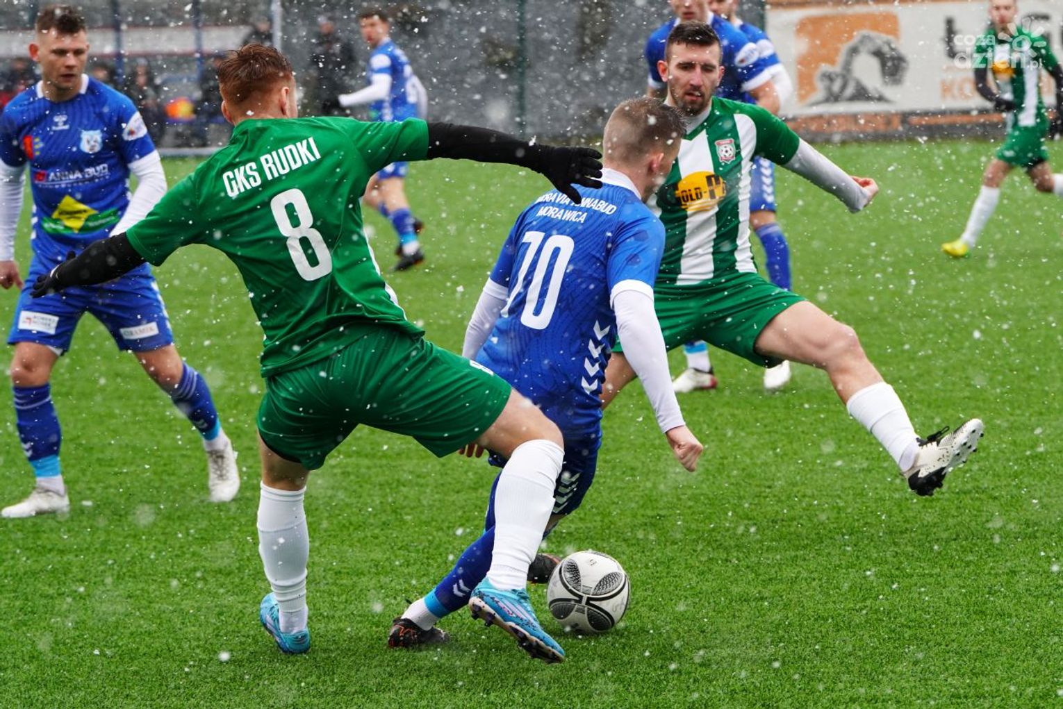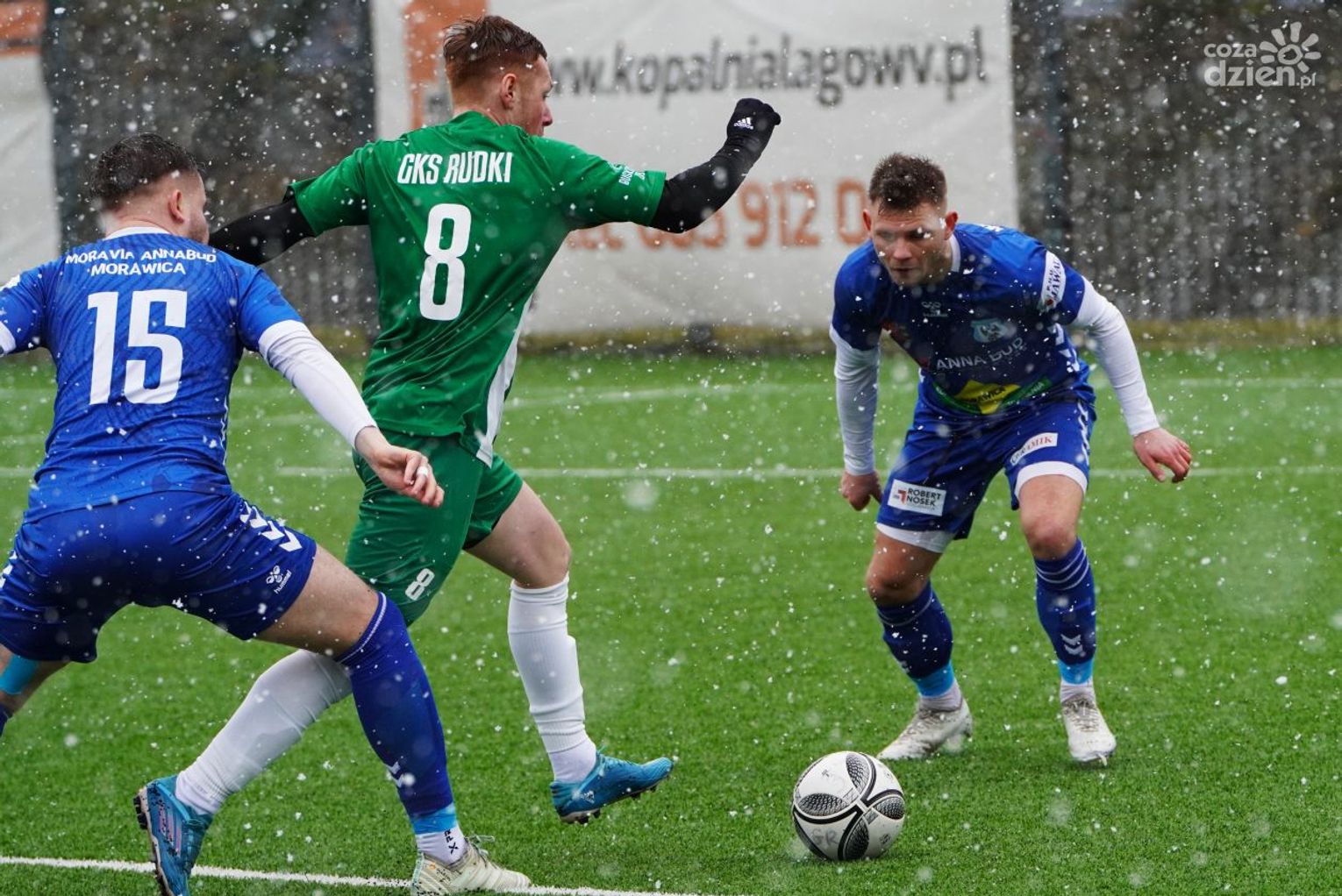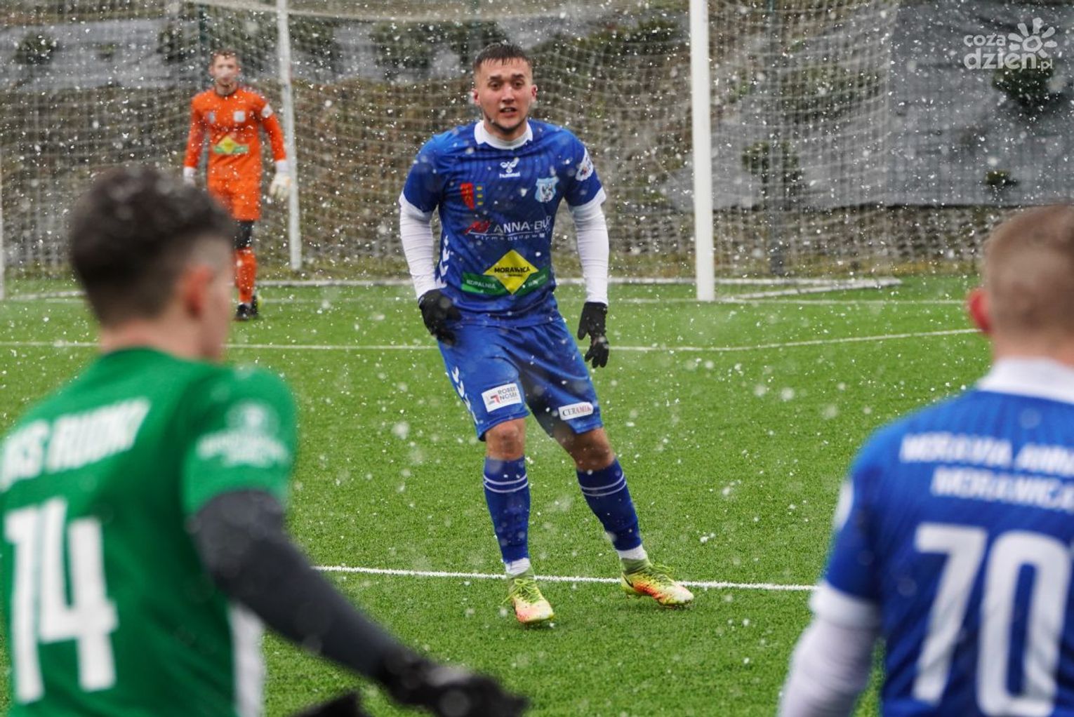 W meczu czwartej ligi świętokrzyskiej piłki nożnej GKS Rudki pokonał Moravię Anna-Bud Morawica 3:0. Wszystkie gole w tej śnieżnej bitwie padły po przerwie.