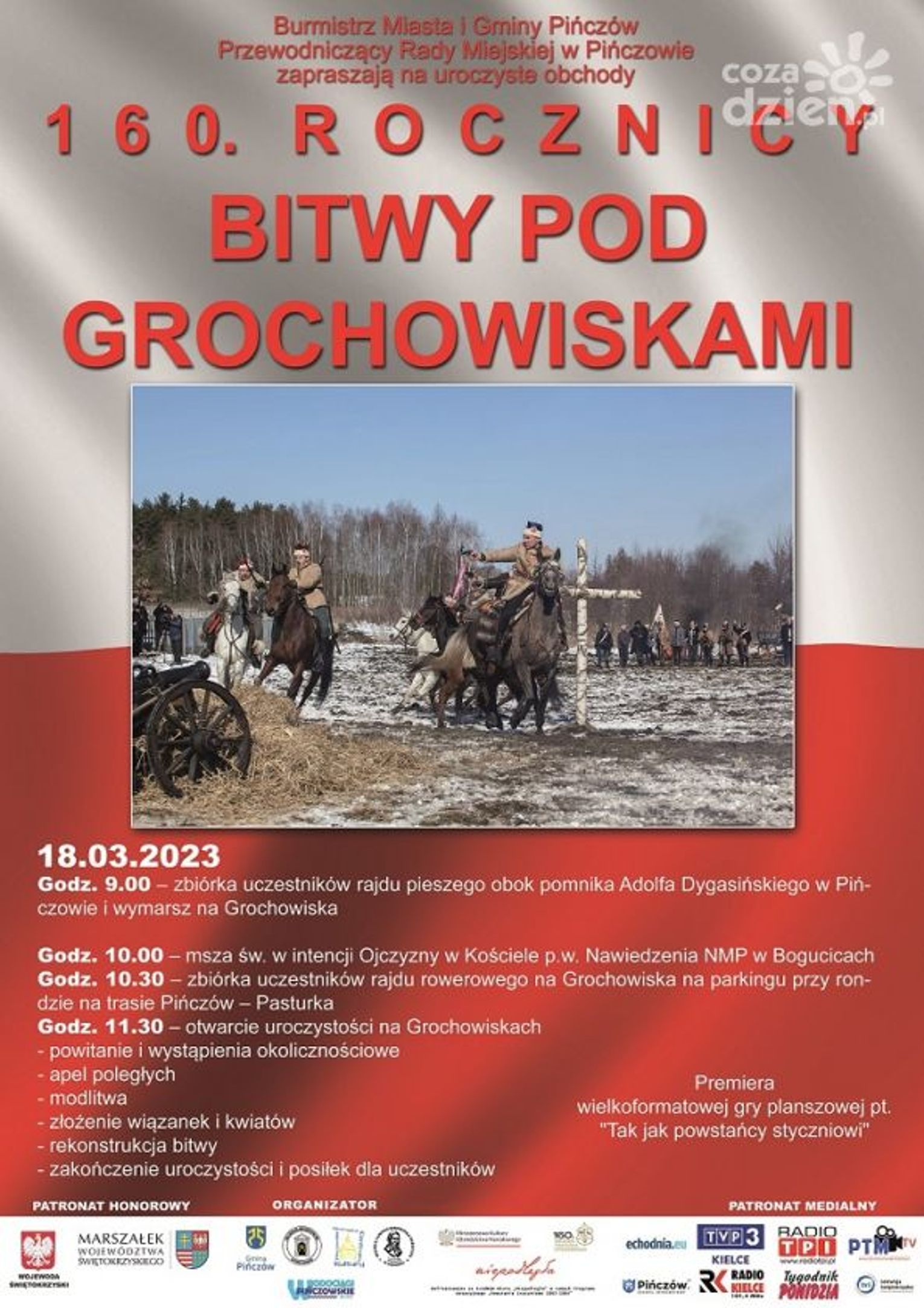 Tradycyjnie wydarzeniom patriotycznym towarzyszy rajd, w którym w tym roku uczestniczy prawie 200 piechurów. Do pokonania maja dystans 15 km jaki dzieli centrum Pińczowa, skąd wyruszyli do Grochowisk.