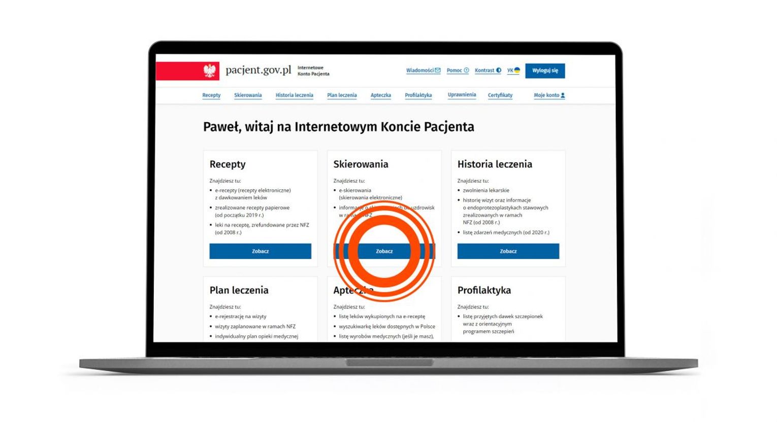 pacjentowi pozwoli w każdym momencie na sprawdzenie historii swoich e-skierowań na Internetowym Koncie Pacjenta (IKP) – w zakładce „skierowania” i w aplikacji mojeIKP – w zakładce „e-zdrowie”.