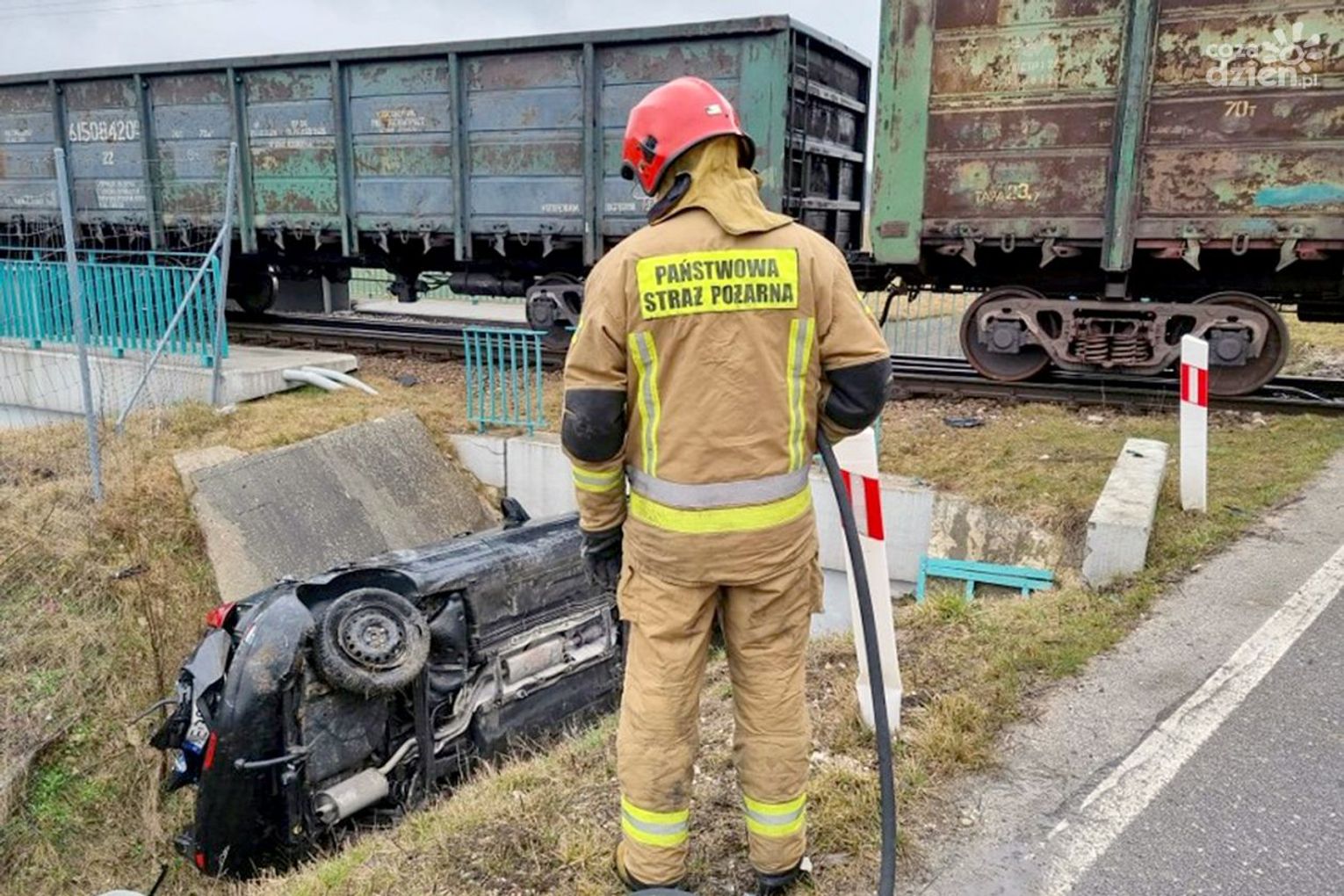 Zderzenie auta z pociągiem, jedna osoba w szpitalu