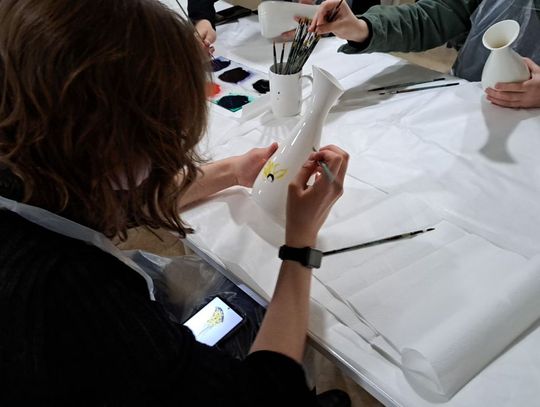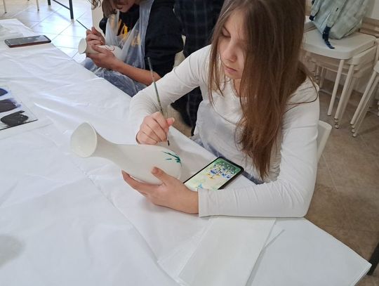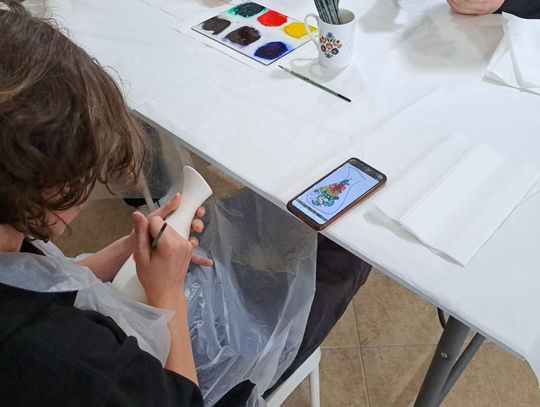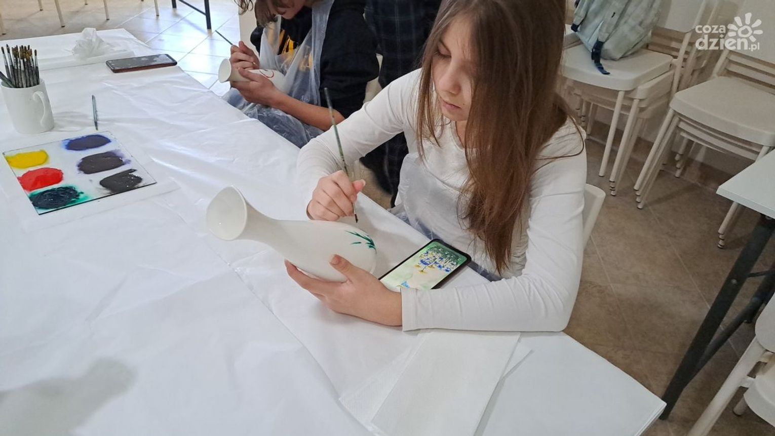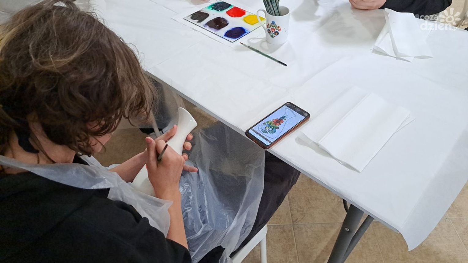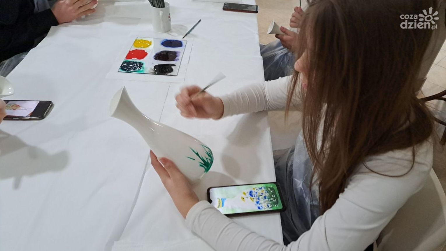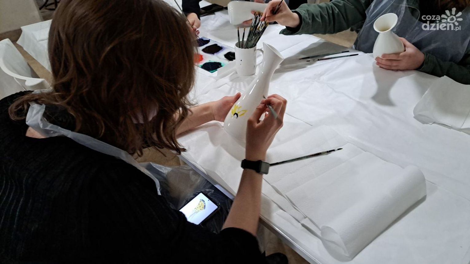 Maja Możdżeń ze szkoły na kieleckim Barwinku malując wiązankę typowo polskich kwiatków przyznała, że przełożenie swojej wizji na porcelanę do łatwych nie należy.