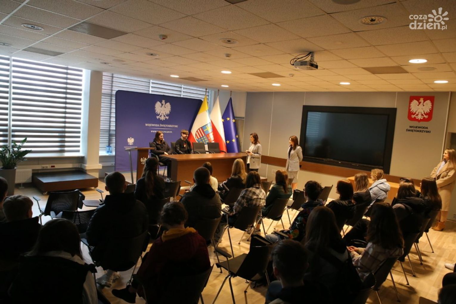 Dyrektor Wydziału Bezpieczeństwa i Zarządzania Kryzysowego Robert Sabat opowiedział uczniom o pracy zespołu Centrum Powiadamiania Ratunkowego. Licealiści mogli zobaczyć mieszczący się w budynku Świętokrzyskiego Urzędu Wojewódzkiego CPR i zapoznać się z pracą operatorów.