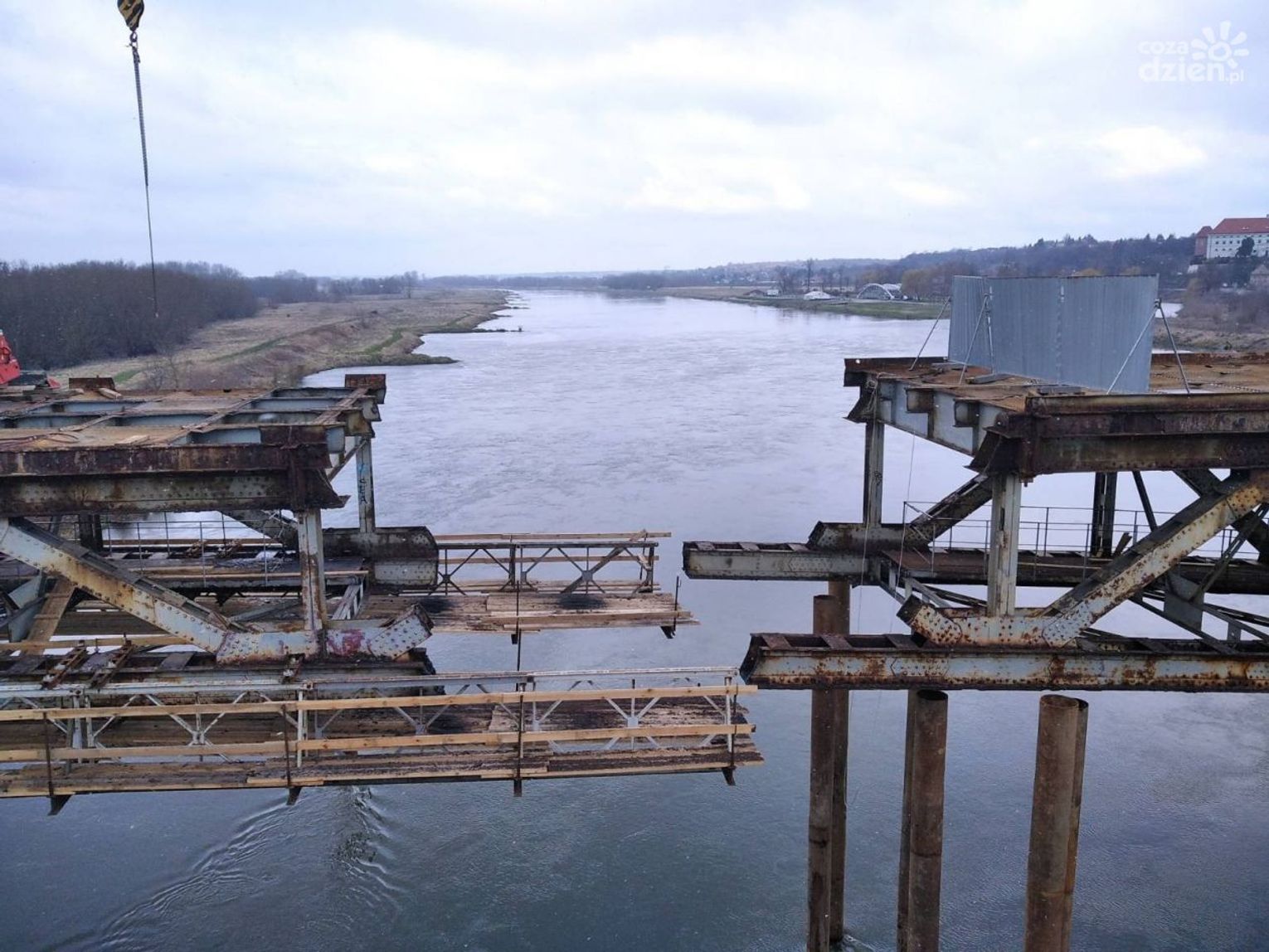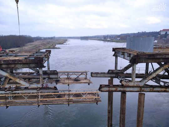 Konstrukcja zbudowanej w 1953 roku przeprawy została właśnie przecięta na pół. W ten sposób rozpoczął się najtrudniejszy etap prac. Wcześniej przełożono instalacje, które umocowane były pod mostem. Wybudowane zostały także podpory pomocnicze i pomosty robocze umożliwiające prowadzenie prac rozbiórkowych. Podpory wykorzystane zostaną także przy budowie nowej konstrukcji. A rozbiórka stalowej konstrukcji będzie kontynuowana i zakończy się w drugiej połowie roku. Dopiero potem nastąpi stawianie nowych elementów.