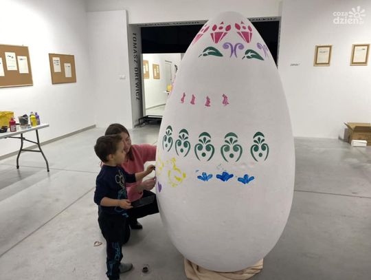 Były też warsztaty z tworzenia palm, koszyczków wielkanocnych, czy wspólne malowanie olbrzymiego jaja, które po weekendzie ozdobi dziedziniec Ostrowieckiego Browaru Kultury.
