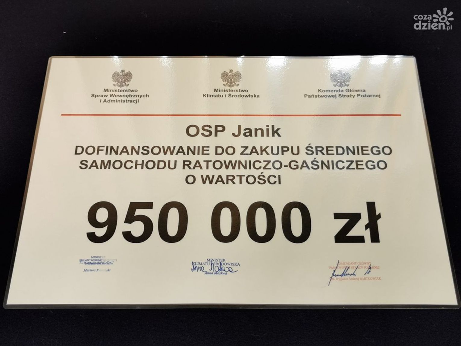 OSP w Janiku w gminie Kunów dostała promesę na zakup nowego pojazdu ratowniczo-gaśniczego. Promesa opiewa na 950 tys. zł. Poza jednostką z Janika dofinansowanie do zakupu nowych samochodów otrzymały jeszcze 31 jednostki Ochotniczej Straży Pożarnej.