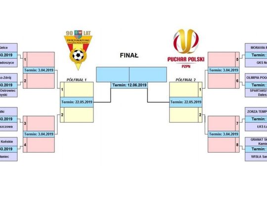 Zestaw par ⅛ Pucharu Polski na szczeblu okręgu świętokrzyskiego.