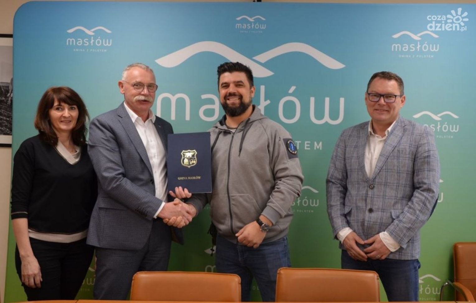 Umowę dotacji w wysokości 5 tys. zł podpisali wójt Tomasz Lato ze skarbnikiem Robertem Szechnickim oraz Michał Madej, prezes Stowarzyszenia. Umowa jest efektem złożonego wniosku w otwartym konkursie ofert na realizację zadań publicznych ujętych w rocznym Programie Współpracy Gminy Masłów z Organizacjami Pozarządowymi oraz podmiotami określonymi w art. 3 ust. 3 o działalności pożytku publicznego i o wolontariacie na 2023 rok z zakresu wspierania i upowszechniania kultury fizycznej.