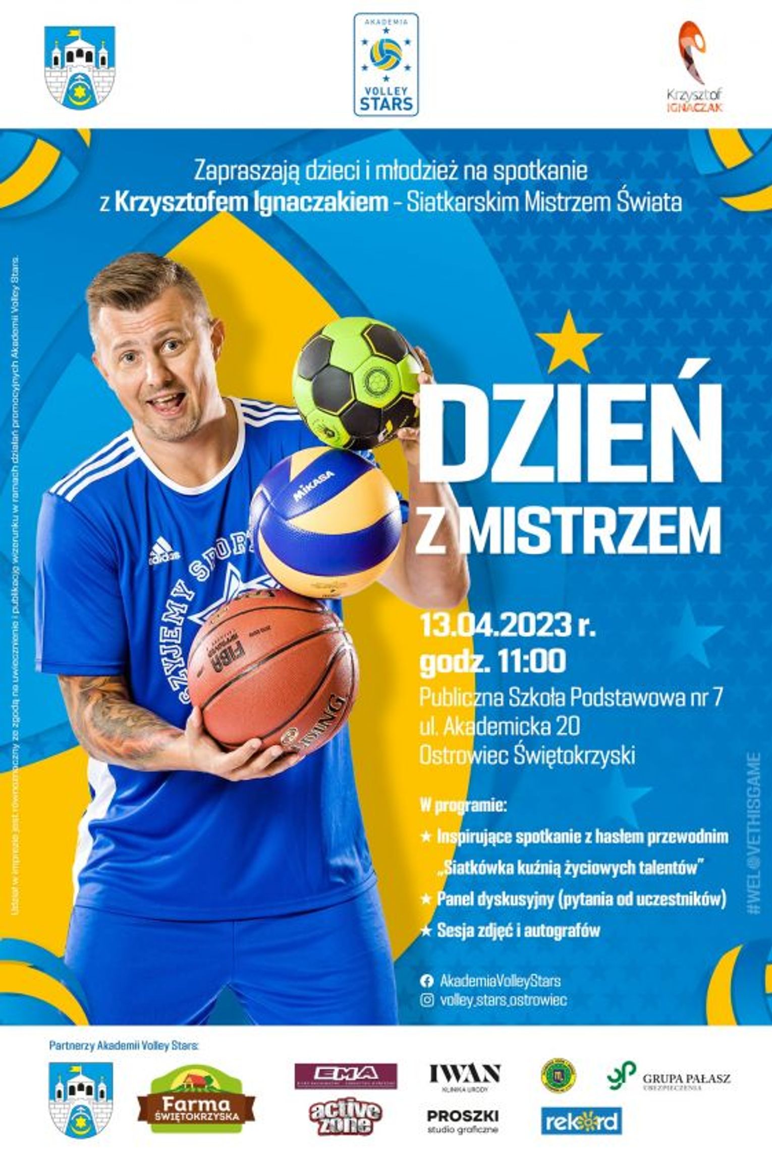 Siatkarski Mistrz Świata odwiedzi Ostrowiec Świętokrzyski. Krzysztof Ignaczak bo o nim mowa spotka się z dziećmi i młodzieżą jutro, czyli w czwartek 13 kwietnia. Po Małgorzacie Glince i Pawle Zagumnym to kolejna gwiazda jaka przyjeżdża do tego miasta na zaproszenie Akademii Volley Stars. Spotkanie z byłym libero Reprezentacji Polski rozpocznie się o godzinie 11.00 w Publicznej Szkole Podstawowej nr 7 w Ostrowcu Świętokrzyskim. Więcej szczegółów o wydarzeniu przybliżył na antenie Radia Rekord 100,9 Damian Ścibisz, prezes Akademii Volley Stars.