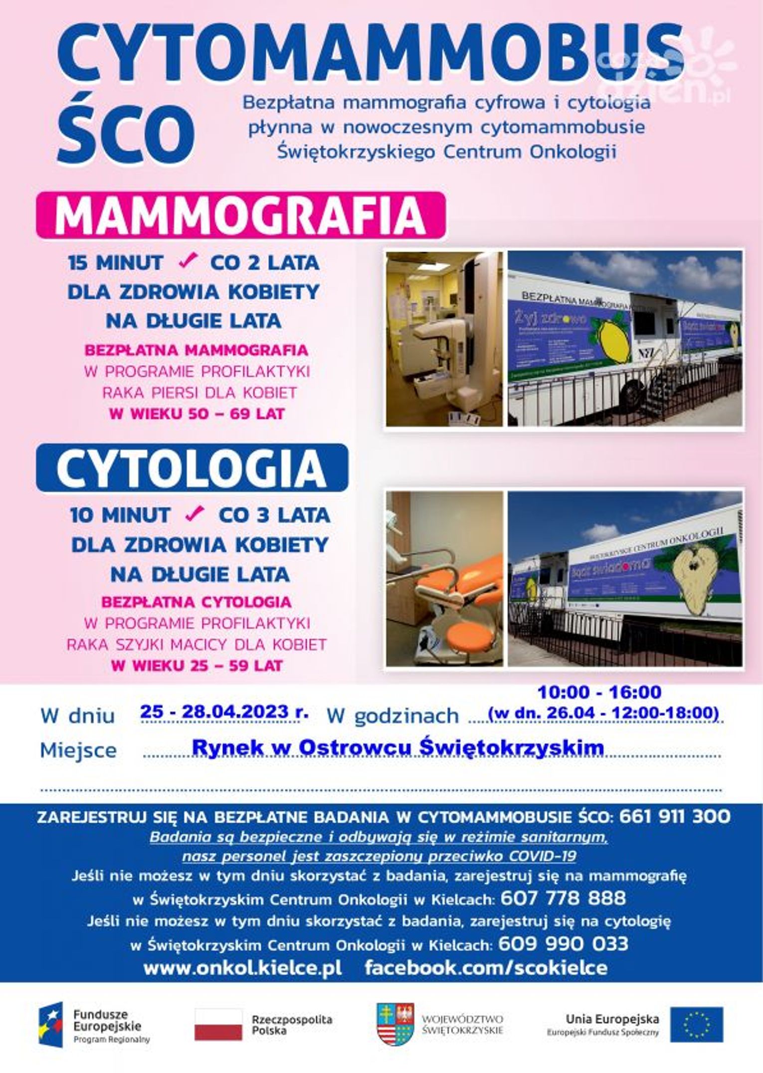 CytoManiek, bo tak nazywany jest ten ambulans będzie stacjonował na ostrowieckim Rynku. Tam też od 25 do 28 kwietnia w godzinach od 10 do 16 a od 26 kwietnia do godziny 12 do 18 będą przeprowadzane bezpłatne badania profilaktyczne.