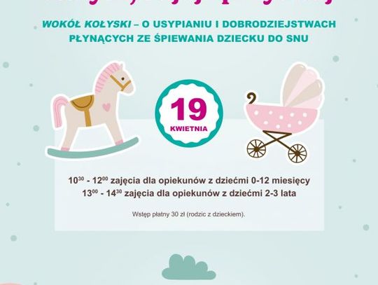 19 kwietnia - Wokół kołyski – o usypianiu i korzyściach płynących ze śpiewania dziecku do snu. Opiekunowie będą mieli okazję m.in. poznać tradycyjne świętokrzyskie pieśni kołyskowe.