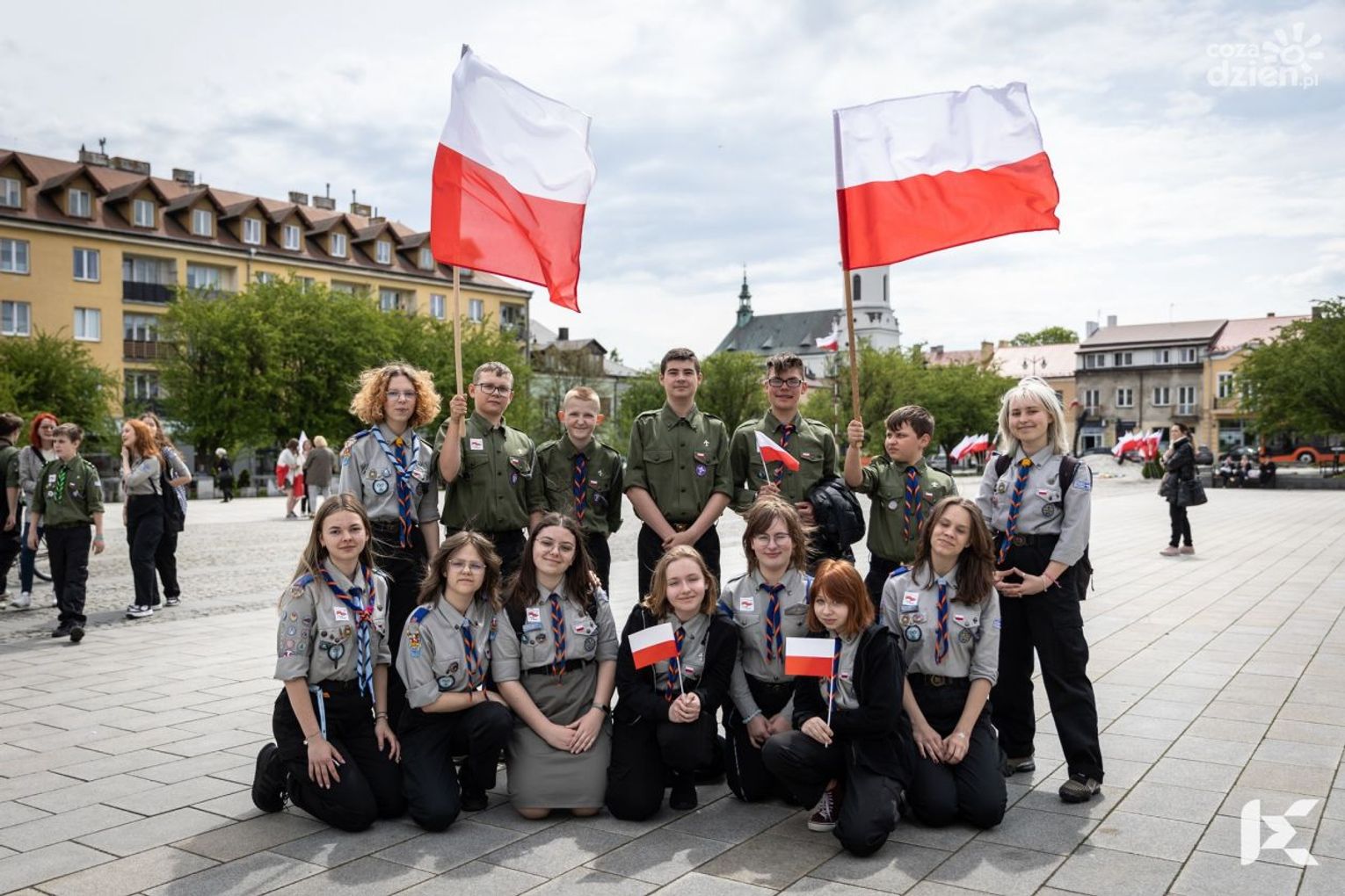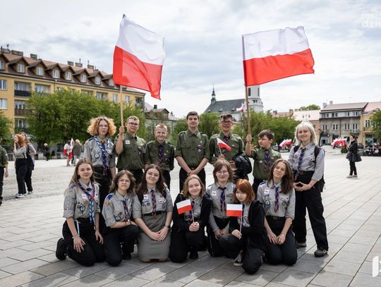 To był już kolejny taki happening zainicjowany przez harcerzy z ostrowieckiego hufca ZHP. W dniu wolnym od szkolnych obowiązków, zjawili się jak na zbiórce w galowych mundurkach przybranych tym razem biało-czerwonymi emblematami. W ten sposób honorowali i przypominali o przypadającym na 2 maja Święcie Flagi. Były więc zupełnie małe chorągiewki, ale jak widać na zdjęciach także porządne flagi.