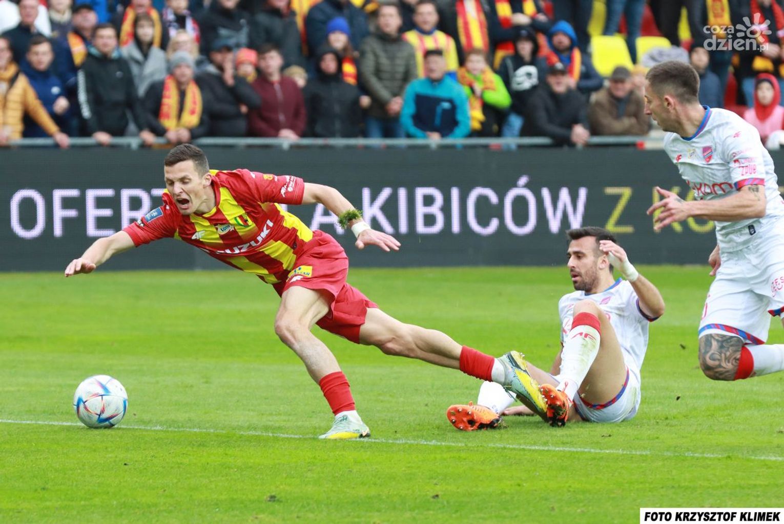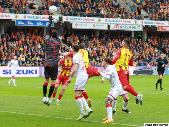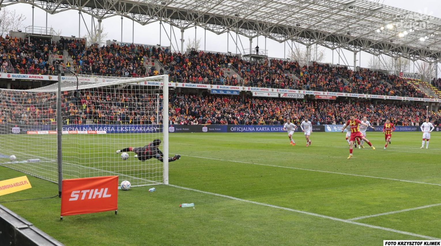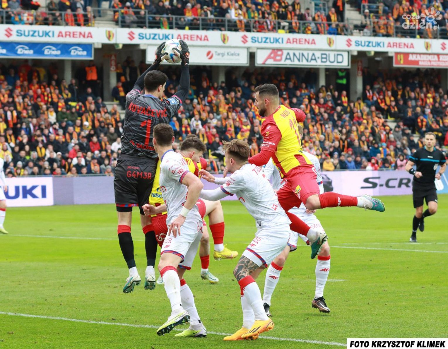 Łukowski podszedł do karnego podyktowanego za zagranie ręką Koczergina i w 36 minucie dał prowadzenie Koronie. Po zmianie stron Raków ruszył. W 67 minucie sam na sam z Marcelem Zapytowskim wyszedł Fran Tudor, ale bramkarz kielczan odbił piłkę, a przy dobitce Wiktora Długosza świetnie interweniował Miłosz Trojak. W końcówce okazję sam na sam zaprzepaścił Kacper Kostorz, a Raków dostał piłkę meczową po tym jak poślizgnął się golkiper Korony. Vladislavs Gutkovskis wyłożył na tacy Franowi Tudorowi, a ten nie trafił do pustej bramki. Kielczanie odetchnęli z ulgą.
