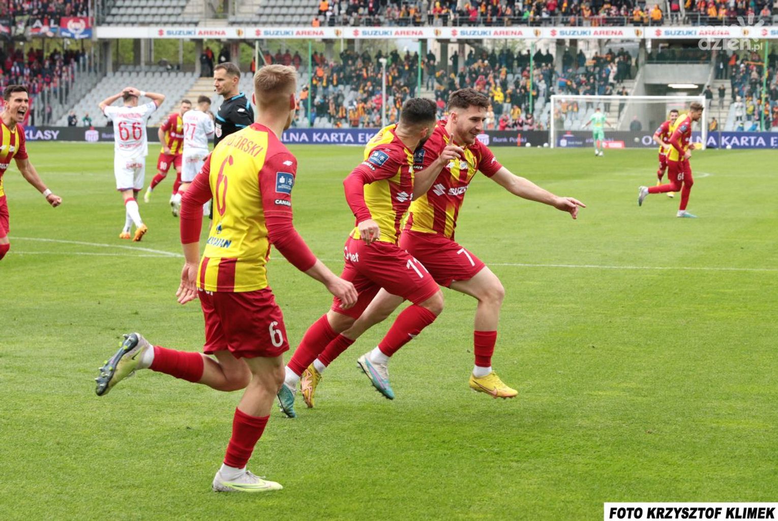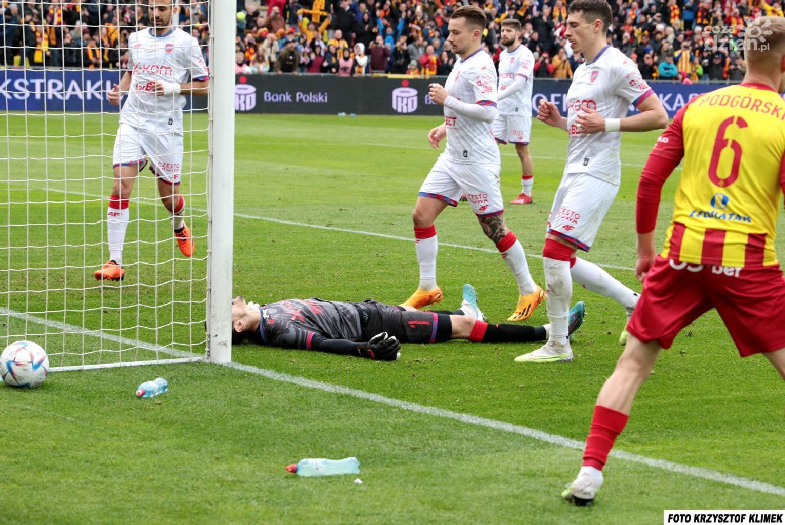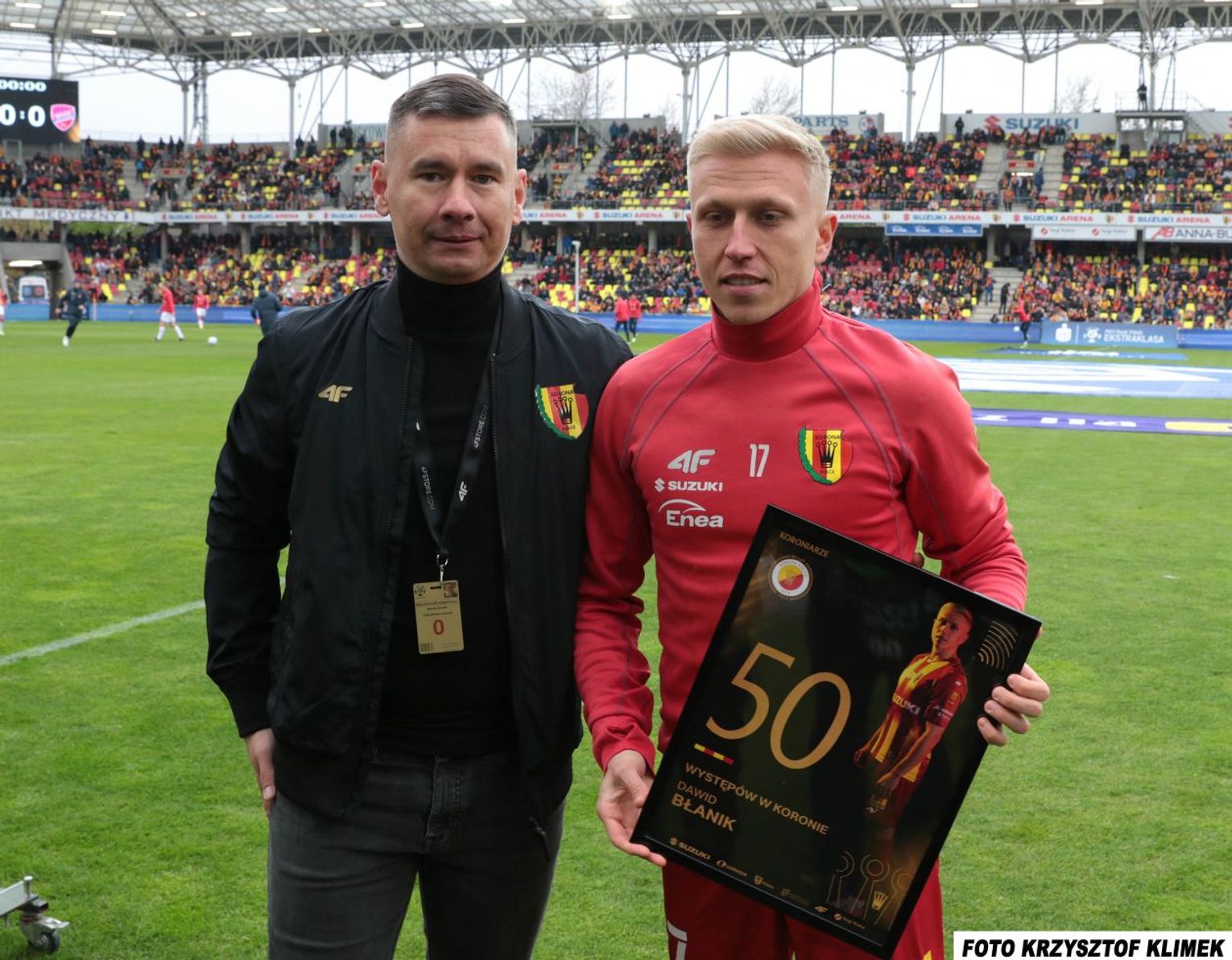 Łukowski podszedł do karnego podyktowanego za zagranie ręką Koczergina i w 36 minucie dał prowadzenie Koronie. Po zmianie stron Raków ruszył. W 67 minucie sam na sam z Marcelem Zapytowskim wyszedł Fran Tudor, ale bramkarz kielczan odbił piłkę, a przy dobitce Wiktora Długosza świetnie interweniował Miłosz Trojak. W końcówce okazję sam na sam zaprzepaścił Kacper Kostorz, a Raków dostał piłkę meczową po tym jak poślizgnął się golkiper Korony. Vladislavs Gutkovskis wyłożył na tacy Franowi Tudorowi, a ten nie trafił do pustej bramki. Kielczanie odetchnęli z ulgą.