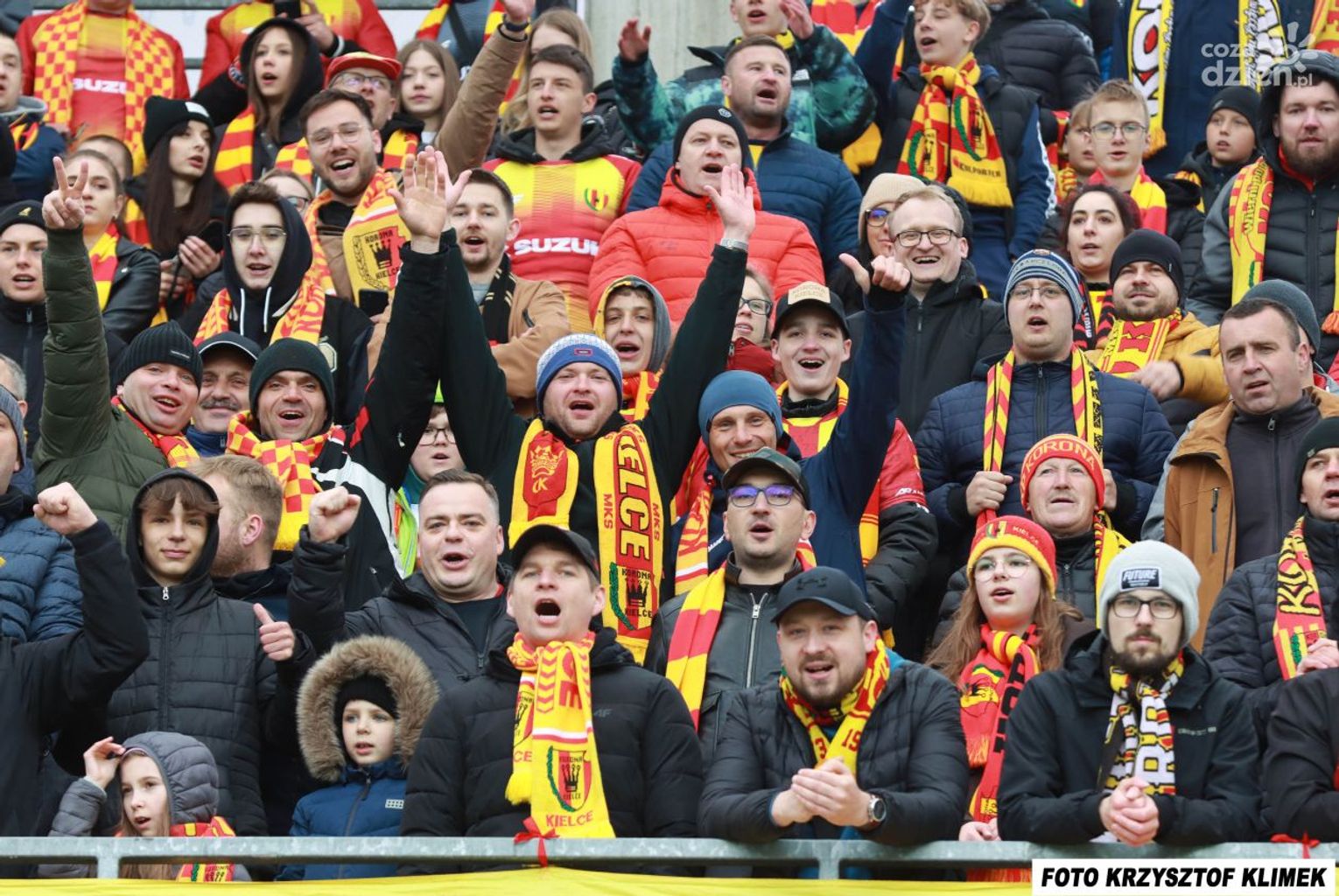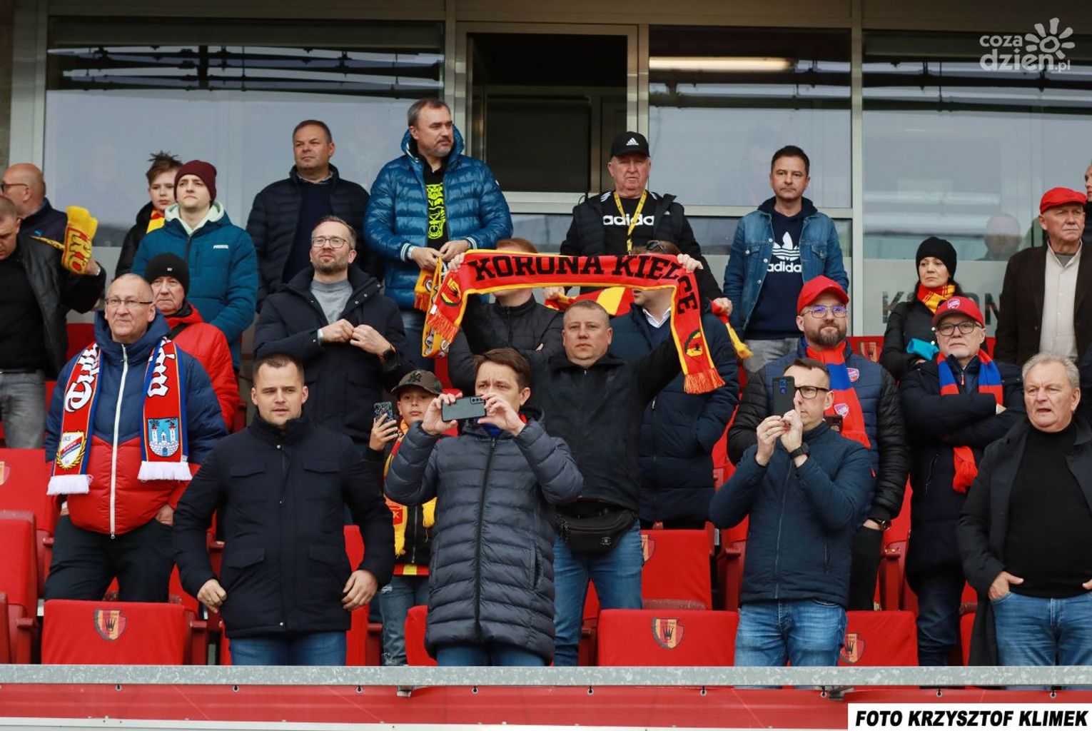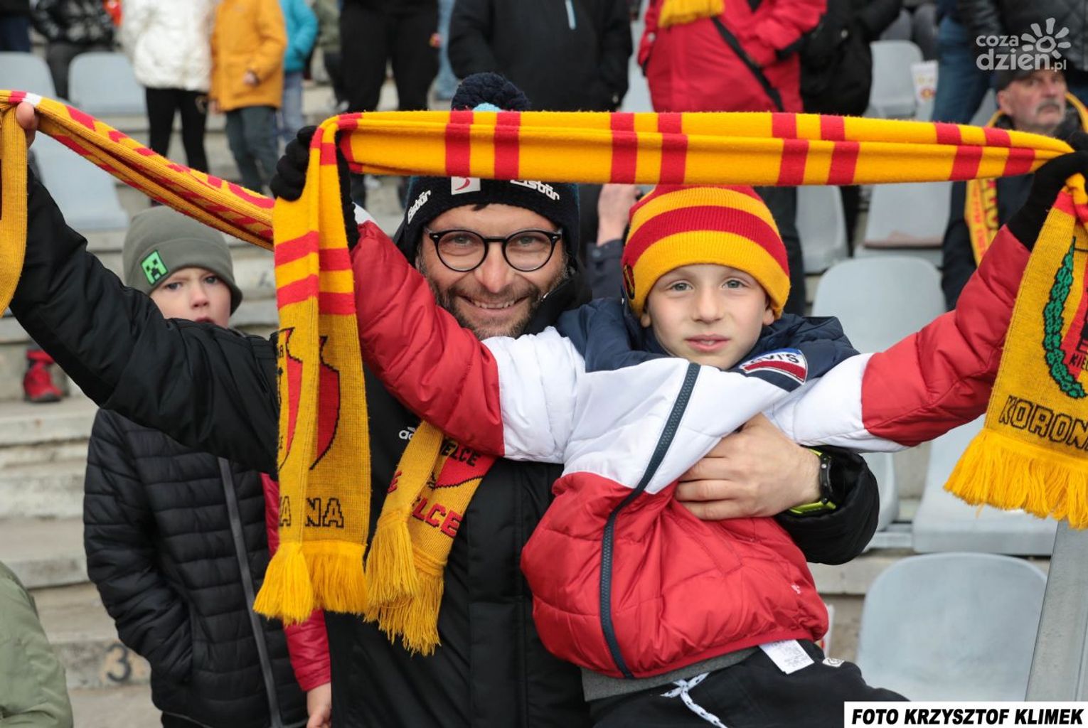 Mecz (numer 500 Korony w ekstrakasie) na Suzuki Arena przyciągnął ponad 14 tysięcy widzów, w tym sporą grupę sympatyków Rakowa. Kibicowsko goście przeżyli spory zawód, bo w przerwie stracili jedną z flag, która po chwili wisiała już na Młynie kielczan. Sportowo Korona zaskoczyła ekipę Marka Papszuna. W pierwszej połowie w poprzeczkę trafił Dominick Zator, a w słupek z wolnego Jakub Łukowski.