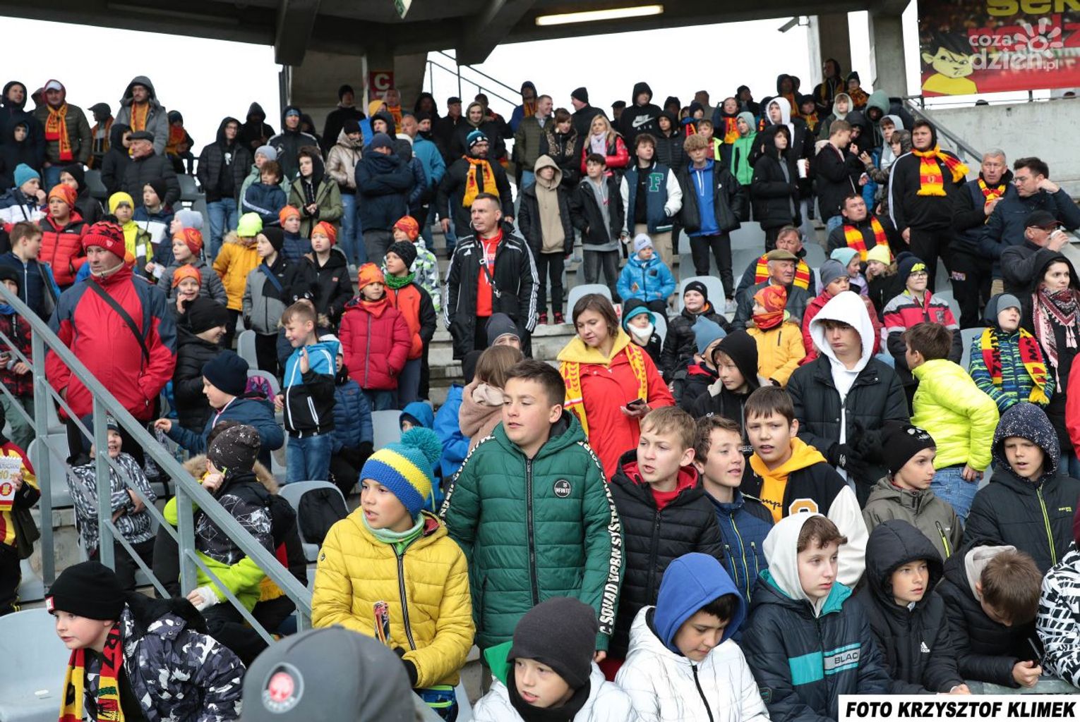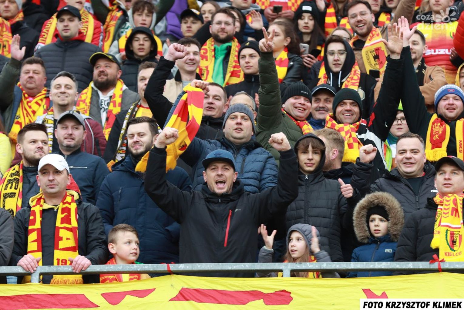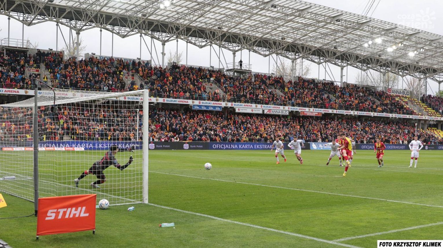 Mecz (numer 500 Korony w ekstrakasie) na Suzuki Arena przyciągnął ponad 14 tysięcy widzów, w tym sporą grupę sympatyków Rakowa. Kibicowsko goście przeżyli spory zawód, bo w przerwie stracili jedną z flag, która po chwili wisiała już na Młynie kielczan. Sportowo Korona zaskoczyła ekipę Marka Papszuna. W pierwszej połowie w poprzeczkę trafił Dominick Zator, a w słupek z wolnego Jakub Łukowski.