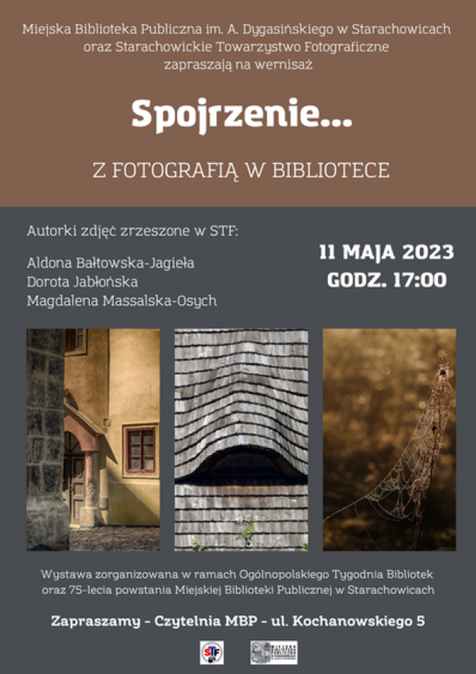 Starachowicka biblioteka zaprasza już 11 maja, w czwartek na otwarcie wystawy fotograficznej w ramach 75-lecia tej placówki, czyli Miejskiej Biblioteki Publicznej oraz Ogólnopolskiego Tygodnia Bibliotek. Wystawa zatytułowana "Spojrzenie" będzie prezentacją fotografii Aldony Bałtowskiej Jagieła, Doroty Jabłońskiej oraz Magdaleny Massalskiej- Osych, artystek zrzeszonych w Stowarzyszeniu Twórców Fotografii.