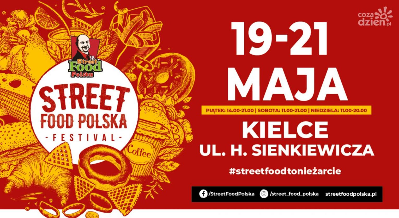 Tym razem w Kielcach wzdłuż ulicy Sienkiewicza przybędzie kilkanaście food trucków. Od piątku do późnych godzin niedzielnych serwowane będą ciepłe przekąski. Kielczanie spróbują takich potraw jak hiszpańskie churrosy, węgierskie langosze ciapaty z sezonowaną wołowiną fuji shuszi , lody tajskie. Nie zabraknie również tradycyjnych potraw kiełbasy z grila czy zapiekanek.
