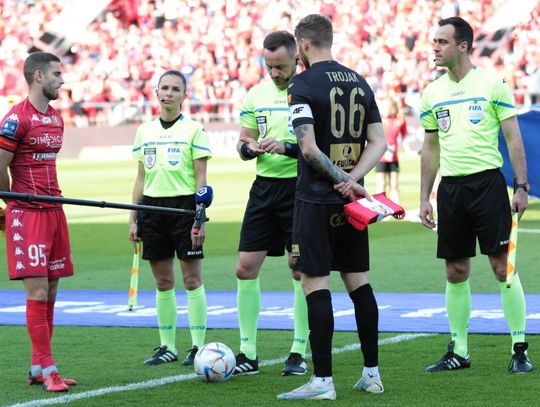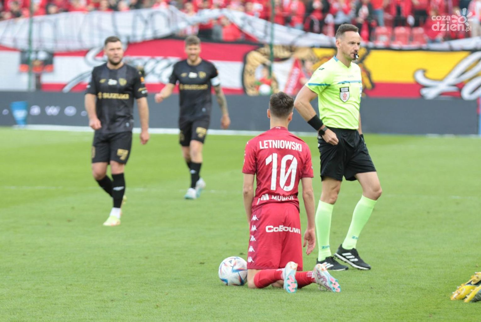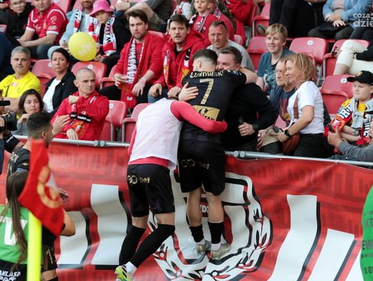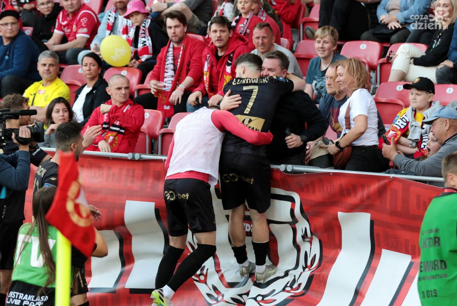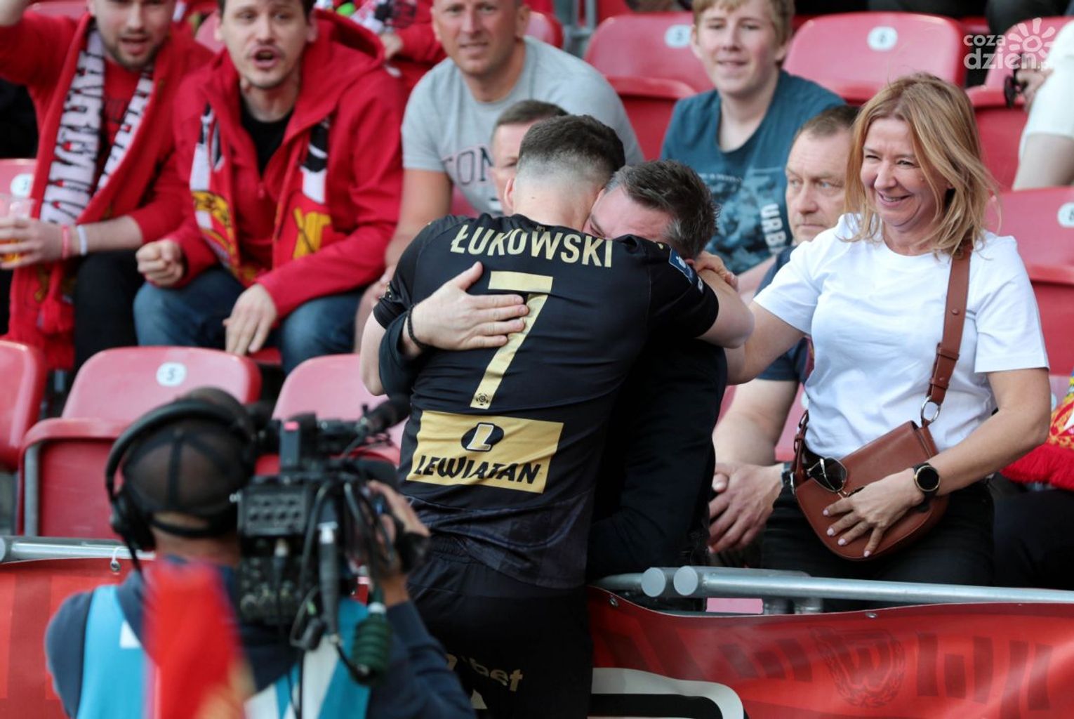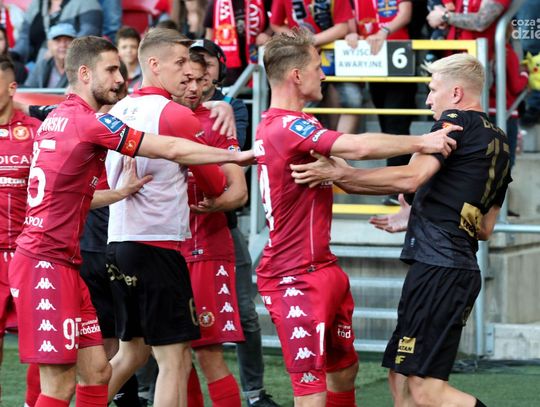 Kielczanie dwa razy obili poprzeczkę bramki Widzewa, ale najważniejsze, że strzelili 3 gole. Ostatni po zagraniu Mariusa Briceaga był dziełem Jakuba Łukowskiego, który cieszył się wraz z ojcem i jego partnerką. Podbiegł do trybuny, uściskał tatę, co wywołało wściekłość fanów z Łodzi. Kibice Łukowskiego w asyście ochrony musieli opuścić trybunę.
