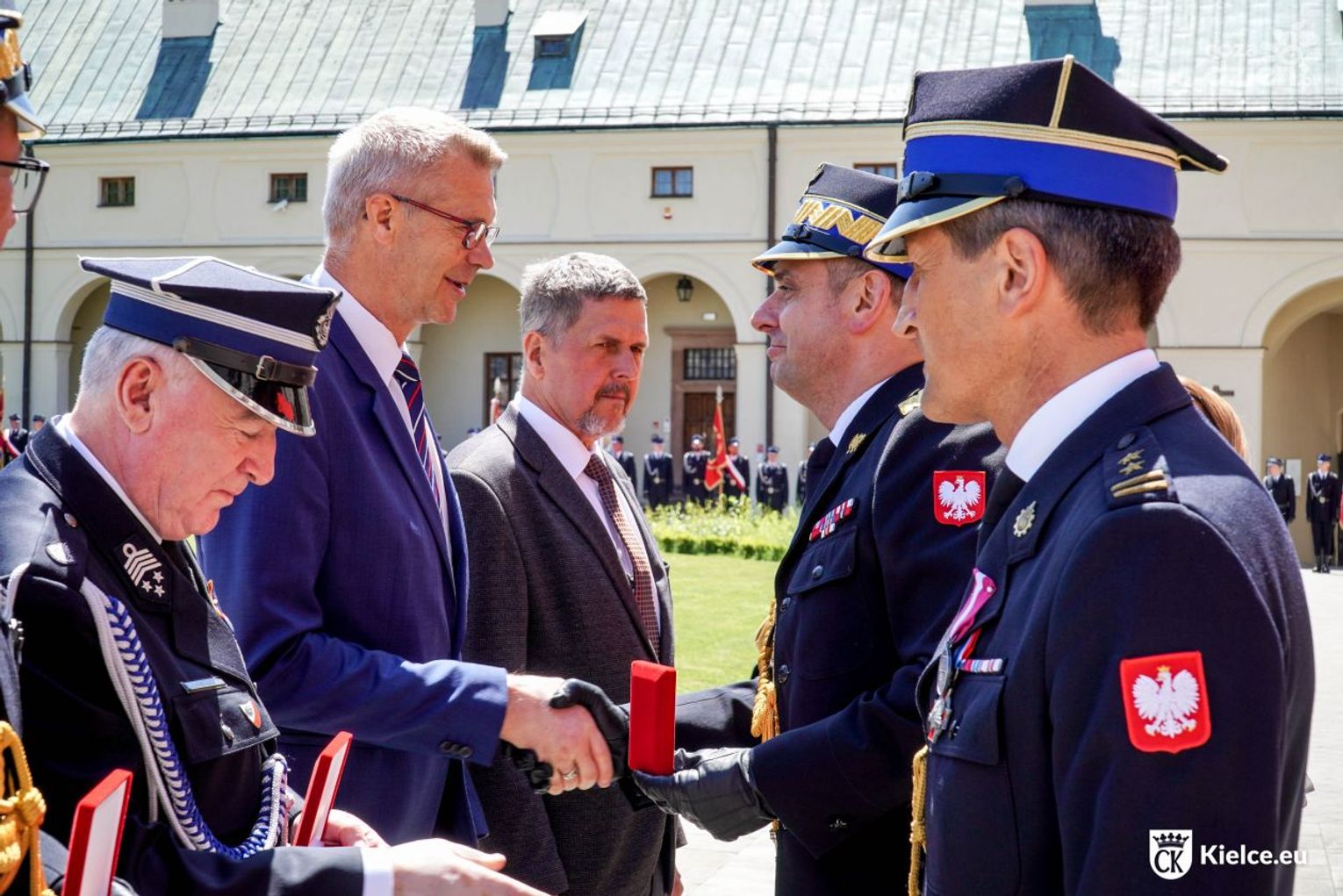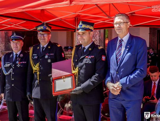 Prezydent Kielc podarował kieleckiej straży pamiątkowy grawerton. Sam zaś uhonorowany za wkład w rozwój ochrony przeciwpożarowej otrzymał specjalnie przygotowany na okoliczność jubileuszu medal. Taki sam medal otrzymał Jarosław Karyś, przewodniczący Rady Miasta.