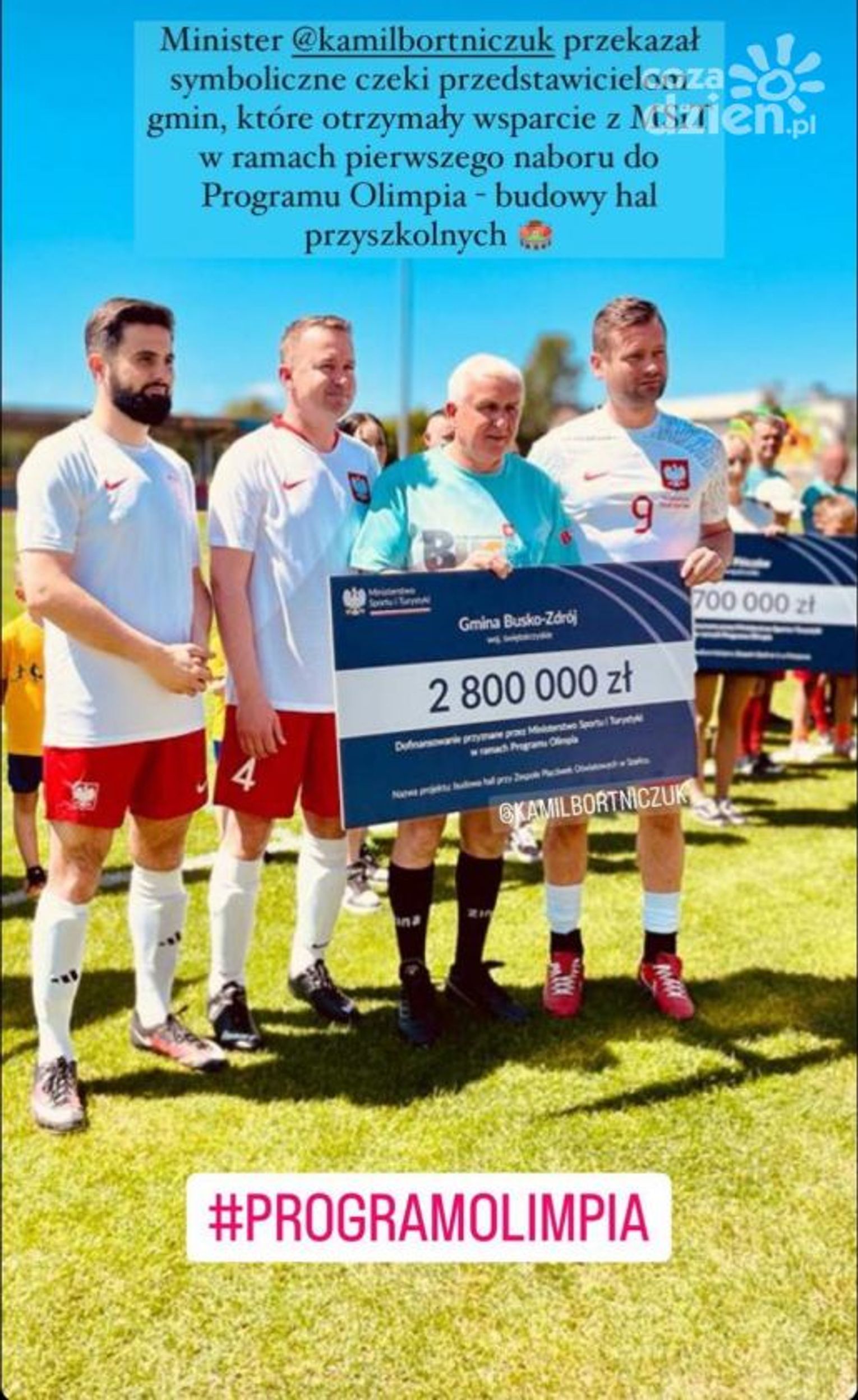 W trakcie uroczystości kilak gmin otrzymało symboliczne czeki z dotacjami na obiekty sportowe w ramach programu Olimpia.