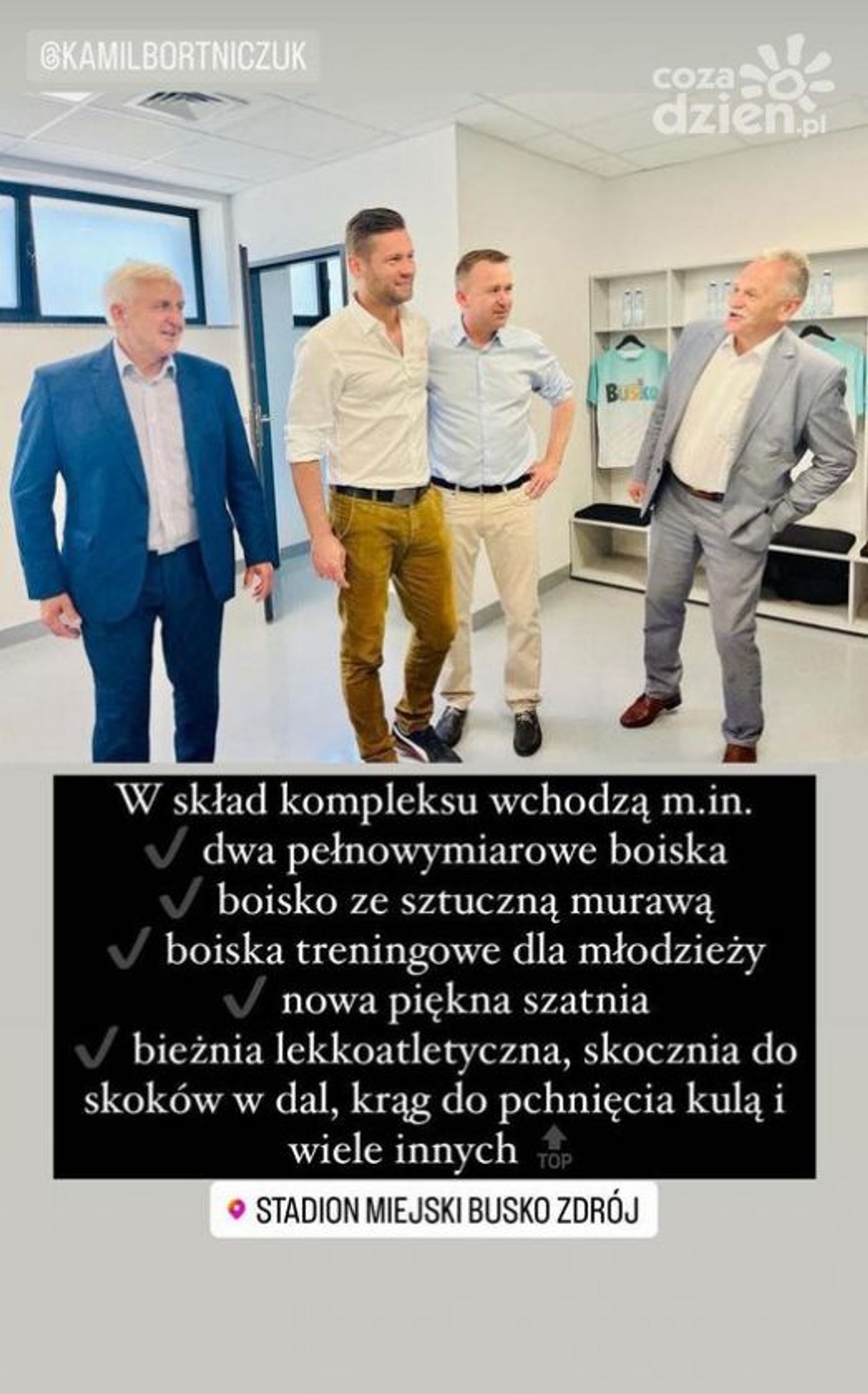 W sobotę w Busku Zdroju z udziałem ministra sportu Kamila Bortniczuka, parlamentarzystów, samorządowców w tym władz miasteczka a przede wszystkim mieszkańców oddano do użytku przebudowany i zmodernizowany stadion miejski. Inwestycja warta 5 mln zł obejmowała gruntowną modernizację stadionu przy ulicy Kusocińskiego. W ramach zadania powstały m.in. cztery boiska do piłki nożnej - trzy z nawierzchnią naturalną oraz jedno ze sztuczną trawą. Dodatkowo powstały trybuny i sztuczne oświetlenie.
