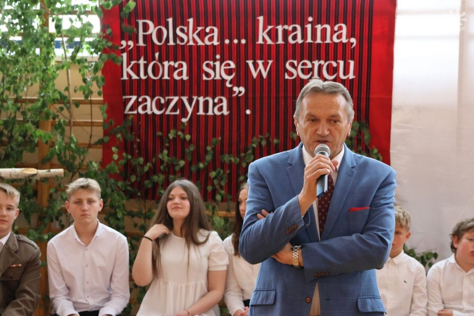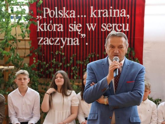 Upominki dla szkół przekazali: starosta Mirosław Gębski, senator Krzysztof Słoń, burmistrz Suchedniowa Cezary Błach, zastępca burmistrza Bodzentyna Andrzej Jarosiński oraz dyrektor Muzeum Wsi Kieleckiej Tadeusz Sikora .