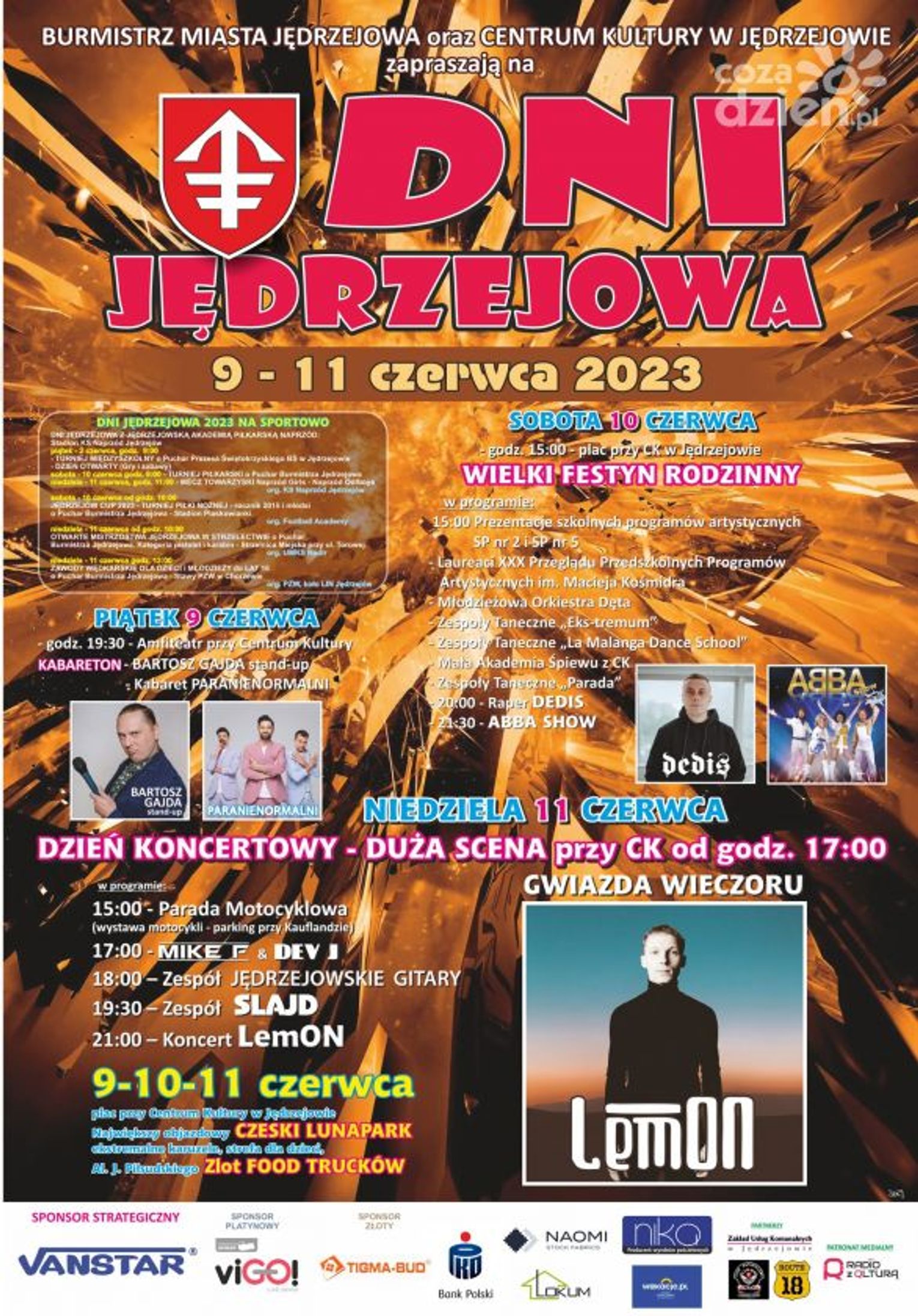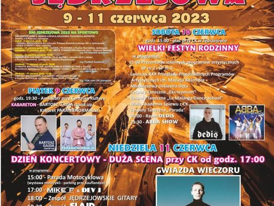 W tym czasie odbywają się Dni Jędrzejowa. Imprezę rozpocznie Kabareton ze Stand upem Bartosza Gajdy i kabaretem Paranienormalni. Sobota będzie pod znakiem Wielkiego Festynu Rodzinnego, zakończy ją ABBA Show. Niedziela to w Jędrzejowie głównie koncerty. Gwiazdą wieczoru będzie zespół Lemon, a już od 15.00 Parada Motocykli.