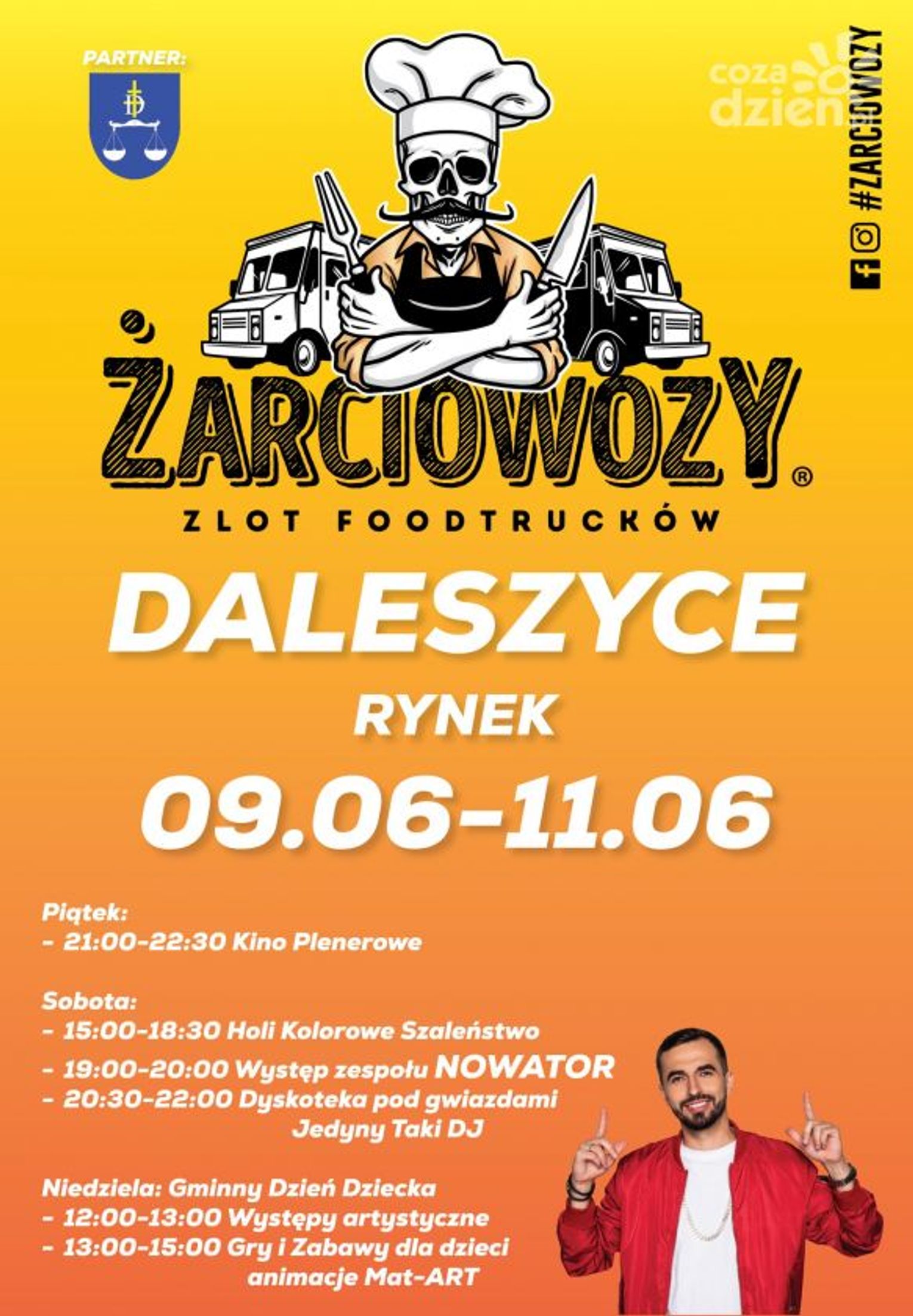 W Daleszycach stacjonują Żarciowozy. To nie tylko zlot Foodtrucków, ale też Kino Plenerowe, Holi Kolorowe Szaleństwo, zespół Nowator i animacje dla dzieci.