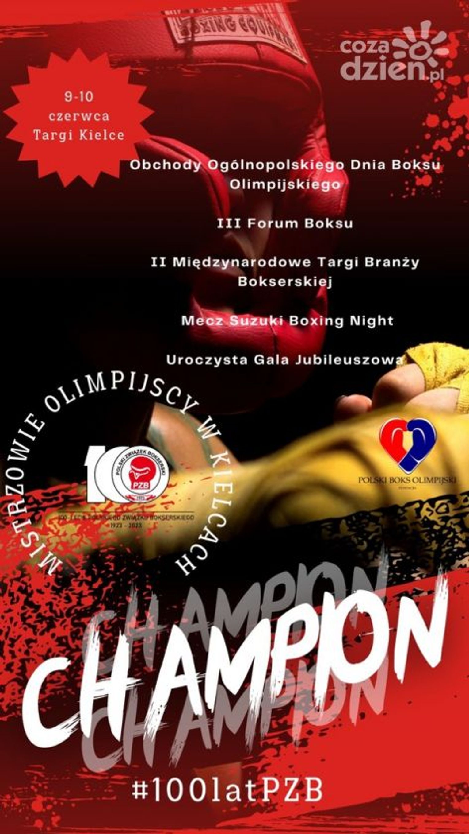 Nie zabraknie prób pobicia rekordów: 9 czerwca – w ciągłej pracy na worku bokserskim i 10 czerwca – rekord Polski w treningu bokserskim. Pierwszy dzień zakończy Gala bokserska Suzuki Boxing Night, a drugi – uroczysta Gala Obchodów 100-lecia Polskiego Związku Bokserskiego.