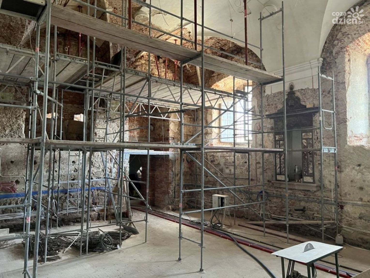 Zakończono etap krycia wstępnego dachu, a sklepienia nad salą główną zabezpieczono płaszczem żelbetowym. Wykonywana jest instalacja sanitarna, a okablowania niskoprądowe dobiegają końca. W międzyczasie trwają także wewnętrzne prace konserwatorskie szafy ołtarzowej i skarbony.