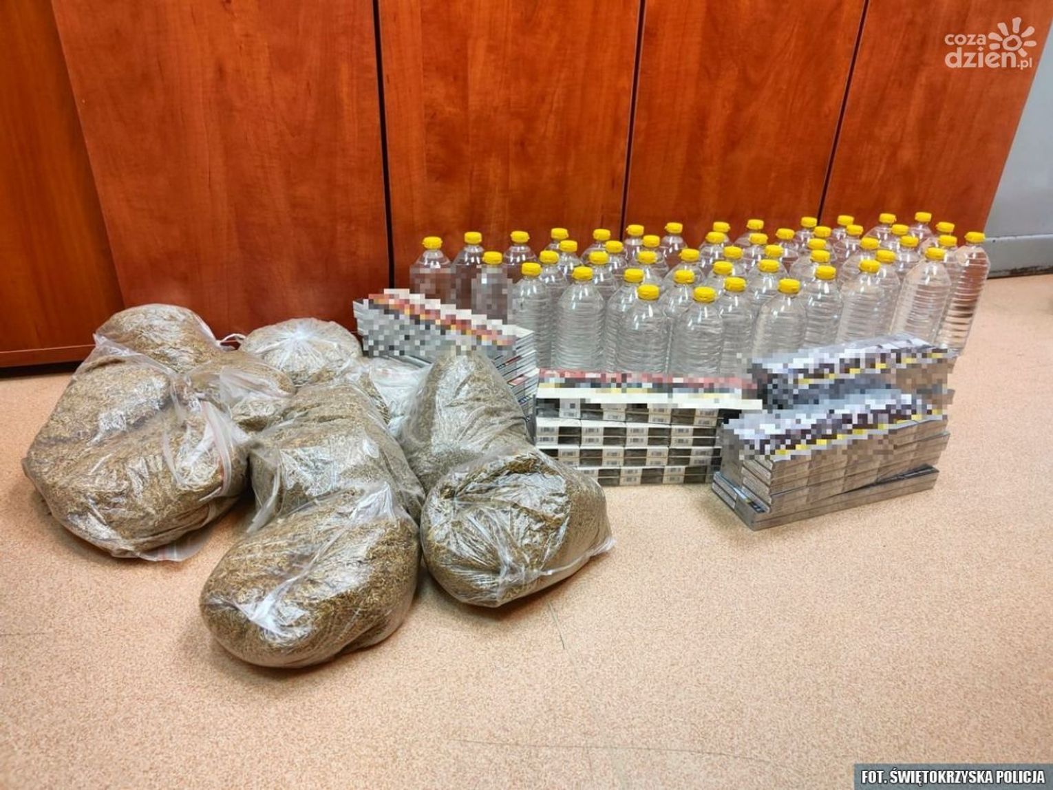 W piątkowe popołudnie funkcjonariusze złożyli służbową wizytę podejrzewanemu, aby sprawdzić posiadane informacje. Okazały się one niezwykle trafne -W trakcie przeszukania auta mężczyzny stróże prawa ujawnili łącznie 3600 papierosów w 180 paczkach, 45 litrów spirytusu oraz 6 kilogramów krajanki tytoniowej. Wszystkie znalezione przez policjantów towary nie były oznaczone polskimi znakami akcyzy - relacjonuje mł. asp. Małgorzata Perkowska - Kiepas z Komendy Miejskiej Policji w Kielcach.