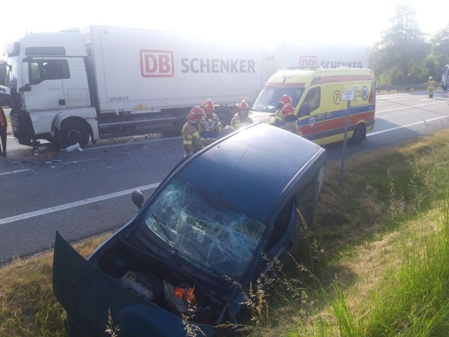 Jedna osoba została zabrana do szpitala, to pasażer osobówki. Pozostali uczestnicy wypadku zostali przebadani przez Zespół Ratownictwa Medycznego i pozostawieni na miejscu.