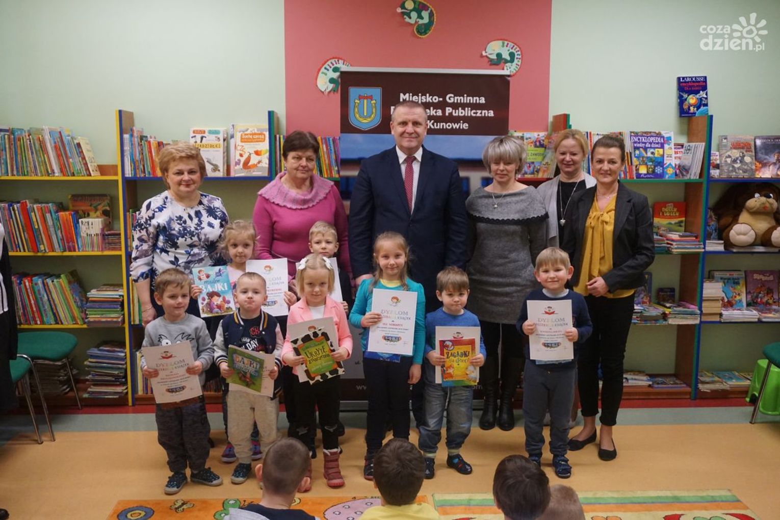Na uroczystym spotkaniu najlepsi czytelnicy odebrali dyplomy i nagrody książkowe z rąk burmistrza Lecha Łodeja. Zwycięzcom gratulowali Ewa Gaj - dyrektor biblioteki, pracownicy Oddziału dla Dzieci, Małgorzata Krajewska - dyrektor Publicznego Przedszkola oraz Iwona Pomykała - wicedyrektor Publicznej Szkoły Podstawowej im. A. Hedy "Szarego" w Kunowie.