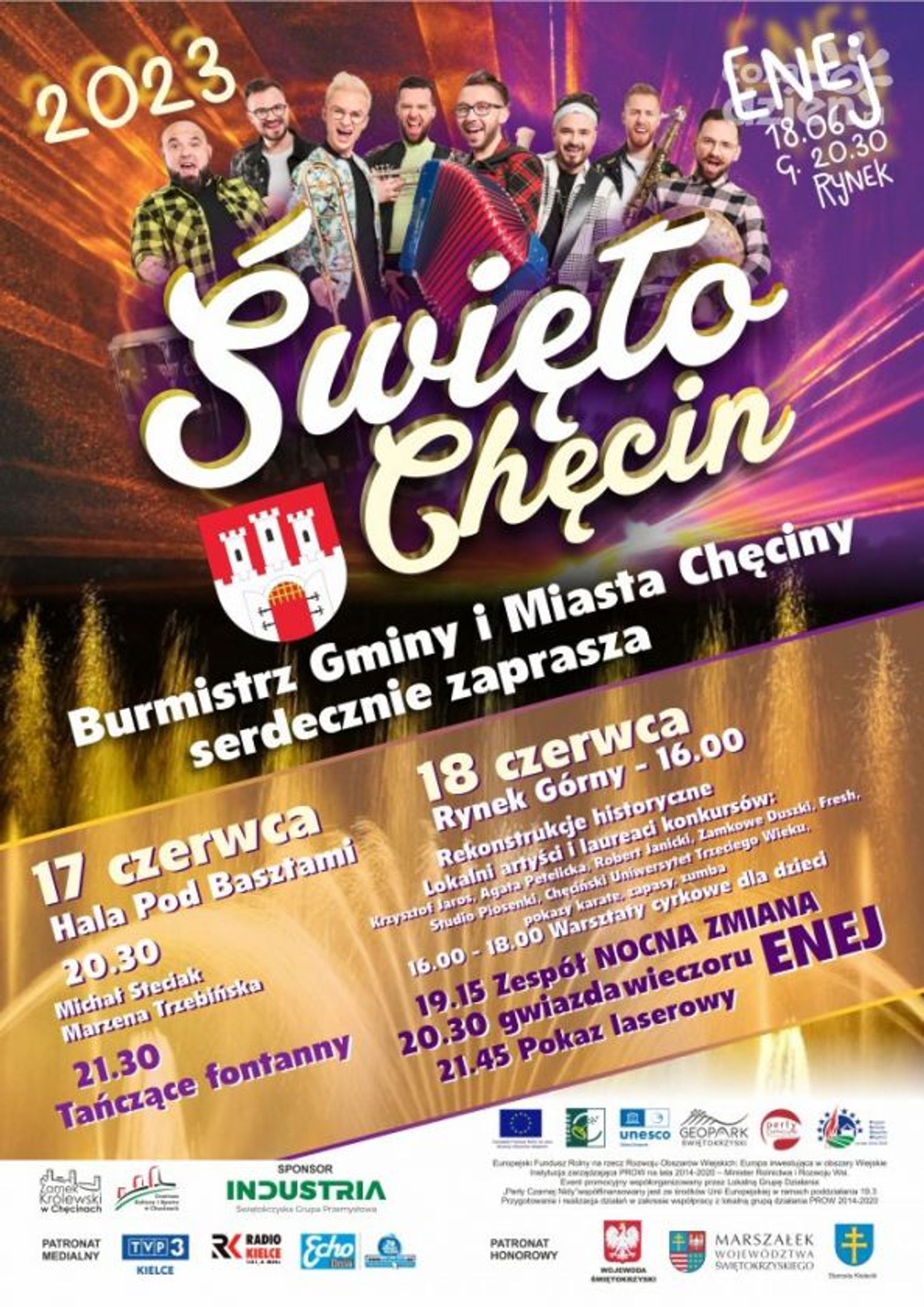 W sobotni wieczór 17 czerwca br. o godz. 20.30, na scenie przy hali widowiskowo-sportowej „Pod Basztami” w recitalu zaśpiewa Michał Steciak, a także Marzena Trzebińska. O godz. 21.30 odbędzie się pokaz tańczących fontann.