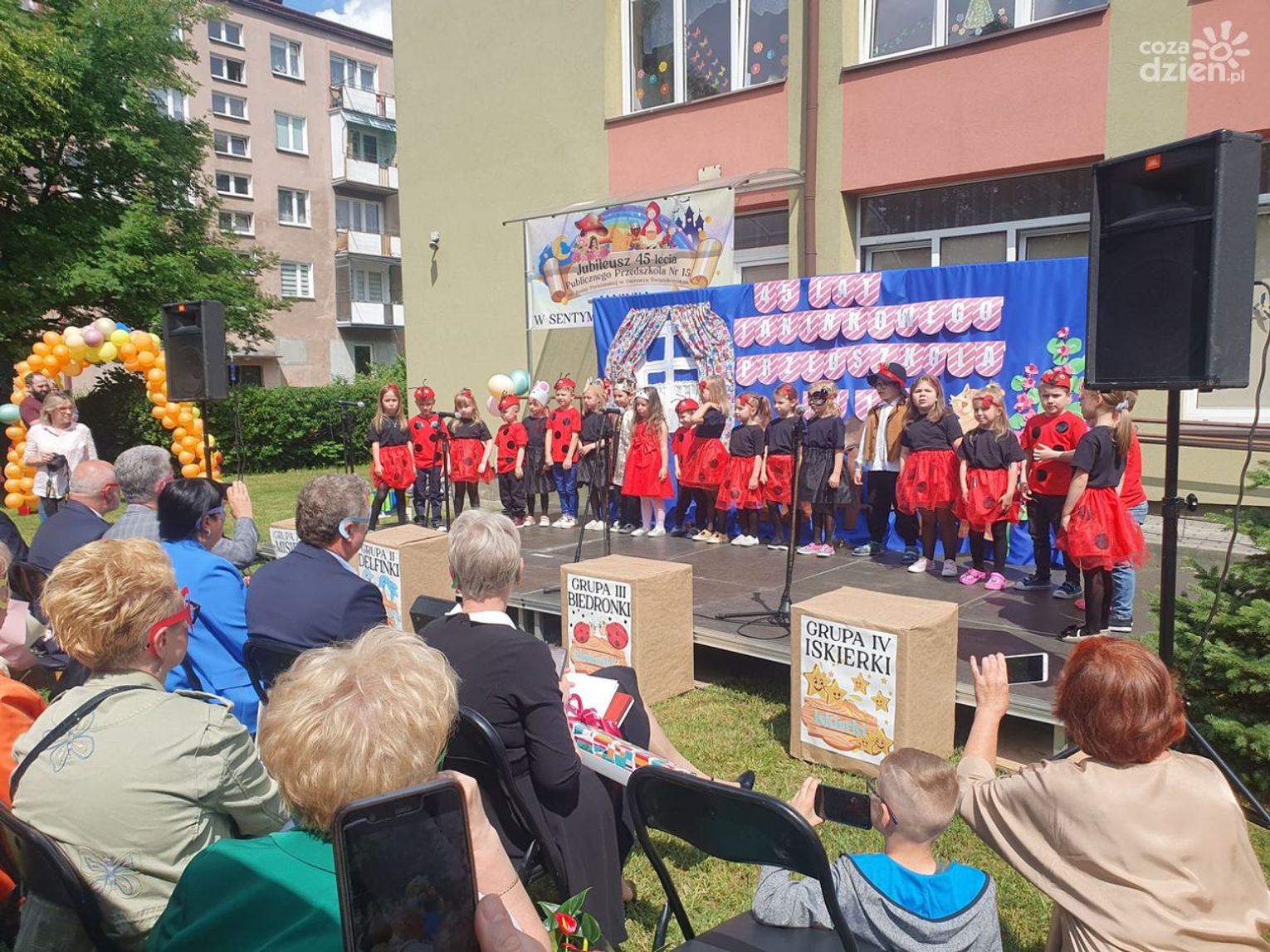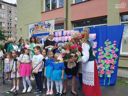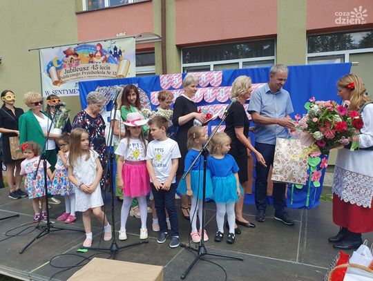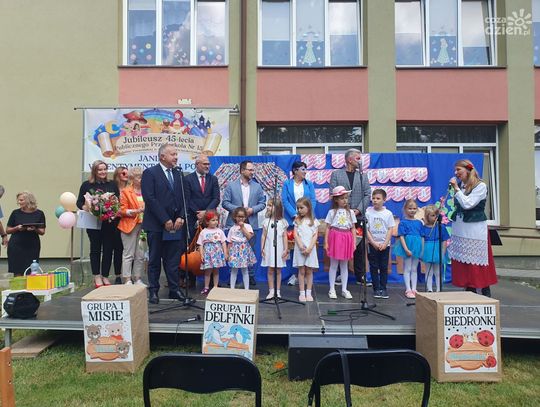 Były oczywiście życzenia i prezenty wręczane przez przybyłych licznie gości. W czasie wystąpień nie zabrakło wspominek o tym, jak szybko minęło 45 lat działalności, a do przedszkola w osiedlu Ogrody uczęszczają już dzieci czy nawet wnuki tych, którzy zaczynali tu edukację lata temu.