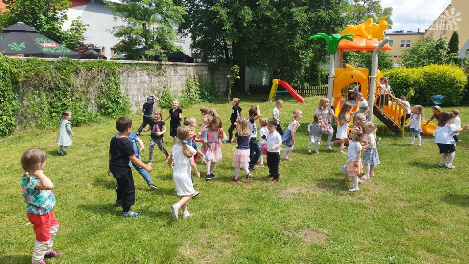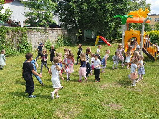 Była oczywiście świetna zabawa samych dzieci, czemu sprzyjała piękna pogoda i otoczenie, czyli ogród jaki otacza "Janinkowe" przedszkole.