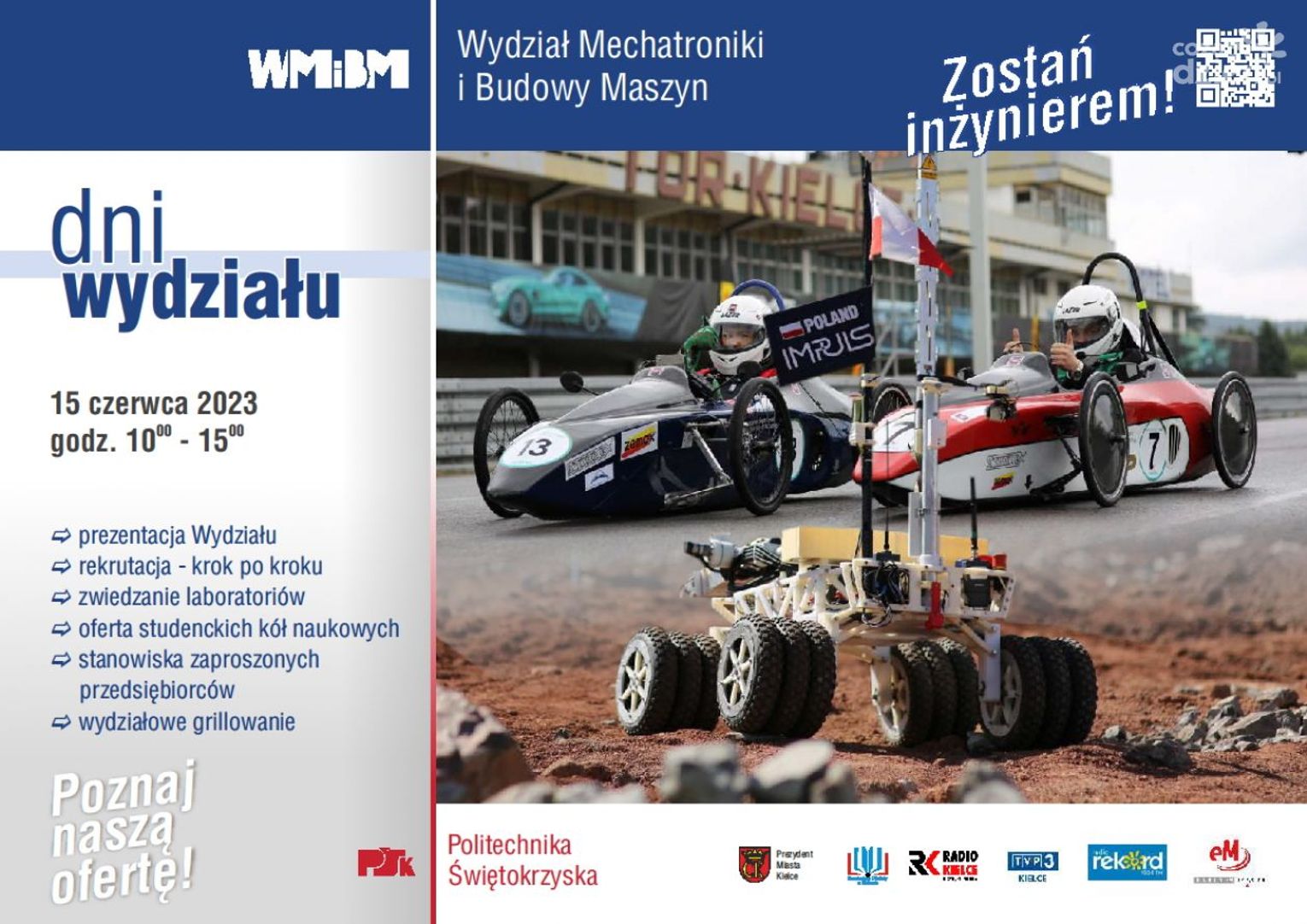 Wydział Mechatroniki i Budowy Maszyn Politechniki Świętokrzyskiej prezentował przyszłym studentom swoją ofertę edukacyjną. Podczas Dnia Otwartego zaprezentowano szerokie możliwości studiowania oferowane przez ten wydział. Zaprezentowano także możliwości rozwijania pasji i pogłębiania wiedzy. O tym między innymi mówił na antenie Radia Rekord Świętokrzyskie Jakub Takosoglu, dziekan wydziału.
