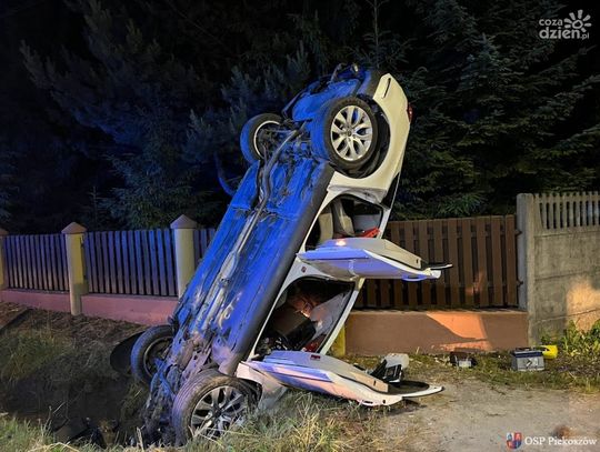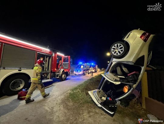 Wypadek wyglądał groźnie. Samochód osobowy Citroen wypadł z drogi, dachował w przydrożnym rowie. 33-letni kierowca przy udzielaniu pierwszej pomocy zgłaszał ból ręki. Został przewieziony przez ratowników medycznych do szpitala.