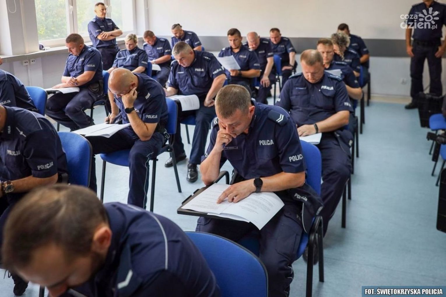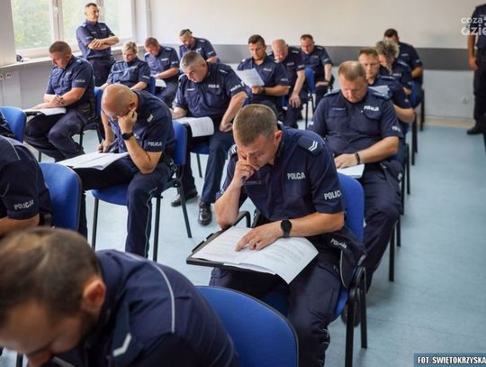 Zmagania mundurowi rozpoczęli o poranku. Funkcjonariusze rywalizujący o miano najlepszego dzielnicowego przystąpili do testu wiedzy, który został opracowany przez wykładowców ze Szkoły Policji w Katowicach. Do tej konkurencji oprócz 26 dzielnicowych przystąpiło również 11 Kierowników Rewirów Dzielnicowych, którzy reprezentowali poszczególne jednostki naszego garnizonu. Policjanci w ciągu godziny musieli odpowiedzieć na 60 pytań dotyczących przepisów m.in. Kodeksu Wykroczeń, Kodeksu Karnego, Kodeksu Prawa o Ruchu Drogowym, a także zagadnień z zakresu procedury niebieskiej karty, pracy dochodzeniowo - śledczej oraz profilaktyki społecznej. Kierownicy natomiast musieli wykazać się również wiedzą z zakresu Zarządzenia nr 5 Komendanta Głównego Policji w sprawie metod i form wykonywania zadań przez dzielnicowego i kierownika dzielnicowych, a także wiadomościami odnośnie zarządzania zasobami ludzkimi.
