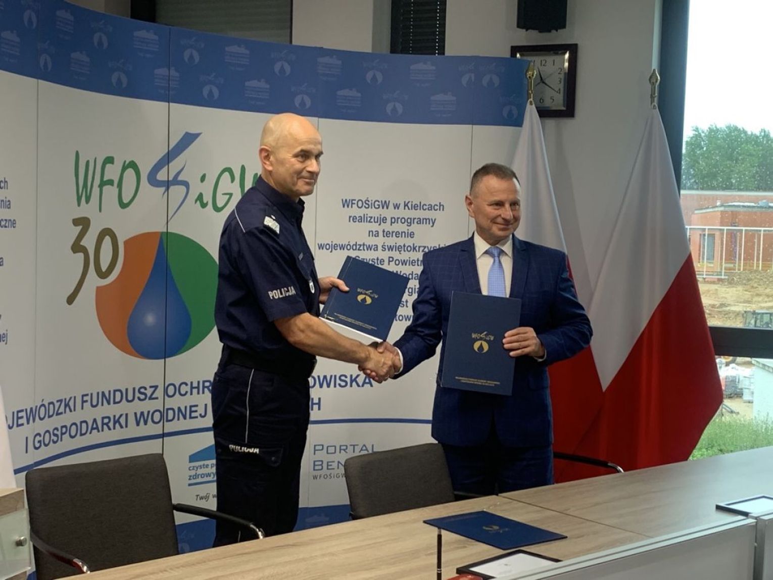 Właściwie były to 3 umowy. Pierwsza dotyczyła instalacji fotowoltaicznej, która będzie w komendzie we Włoszczowie. Policja świętokrzyska w ramach drugiej z umów zakupi 4 samochody elektryczne i 2 stacje ładowania do samochodów osobowych z napędem elektrycznym.