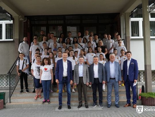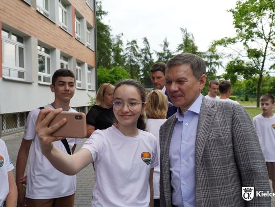Goście z Ukrainy wraz z prezydentem Kielc Bogdanem Wentą spotkali się z dziećmi i młodzieżą z pierwszego turnusu Kielce Camp dla Winnicy "Świętokrzyskie 2023", złożyli też wizytę w Kieleckim Parku Technologicznym.