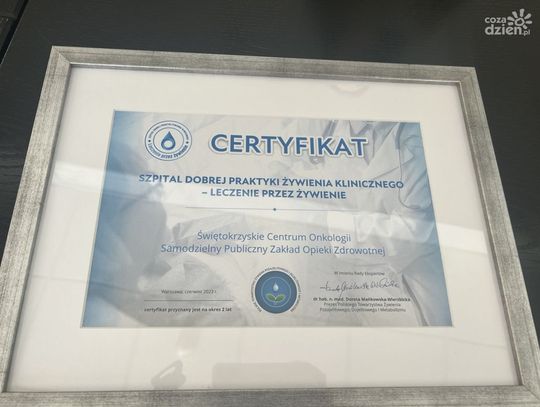 Certyfikat przyznany został przez Polskie Towarzystwo Żywienia Pozajelitowego, Dojelitowego i Metabolizmu, na 2 lata. To już drugie takie wyróżnienie dla tej placówki.