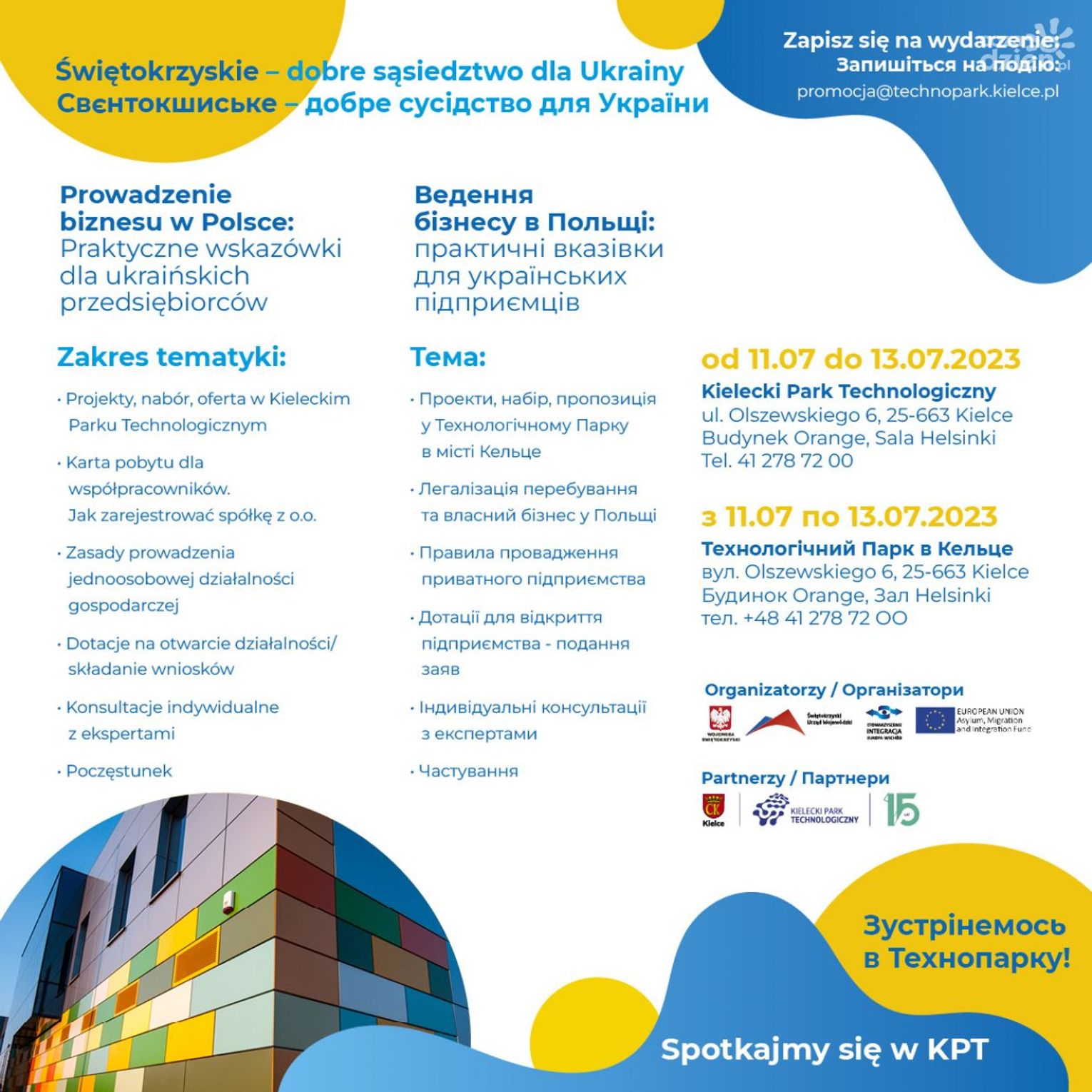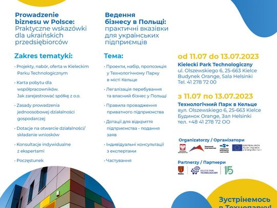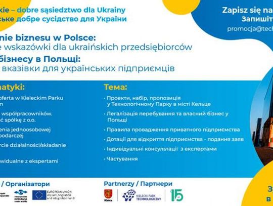Товариство Інтеграції Європа-Схід в рамках проекту Свєнтокшиське - добре сусідство для України, щиро запрошує Вас на повноцінну інформаційну зустріч в Технологічному Парку в місті Кельце ,