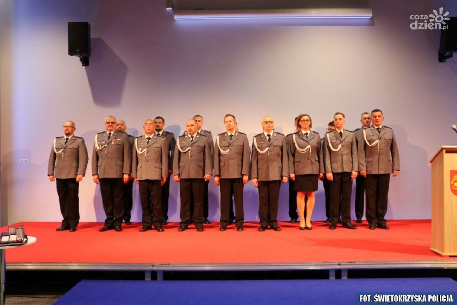 Wręczono również akty mianowania na wyższe stopnie policyjne. W tym roku awans otrzymało łącznie 55 funkcjonariuszy. Wyróżnienia od Starosty Powiatu Ostrowieckiego, Pierwszego Wiceprezydenta Miasta Ostrowca Świętokrzyskiego oraz Burmistrzów i Wójtów samorządów miast i gmin powiatu otrzymali również dzielnicowi.