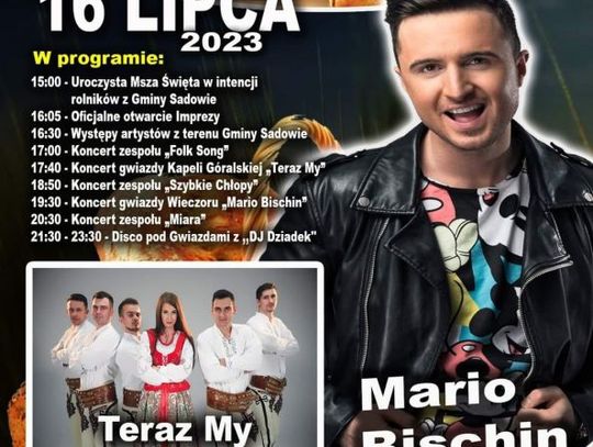 Gwiazdą tegorocznej imprezy w Sadowiu będzie kapeli góralskiej Teraz My oraz Mario Bischina.
