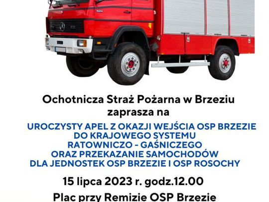 Uroczysta zbiórka z apelem odbędzie się w sobotę 15 lipca ma placu przed remizą. W trakcie oficjalnej części jednostka OSP Brzezie oraz sąsiednia OSP Rosochy otrzymają samochody gaśnicze.